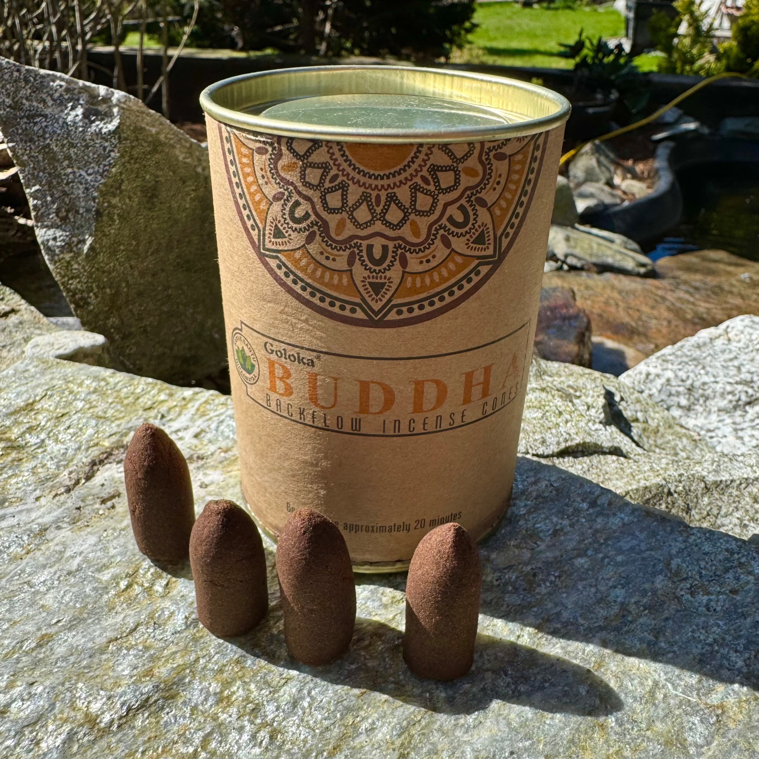 • Goloka Backflow Incense Cones Can of 24 - Choose from 6 Scents for Aromatherapy and Meditation - The Celestial Boutique