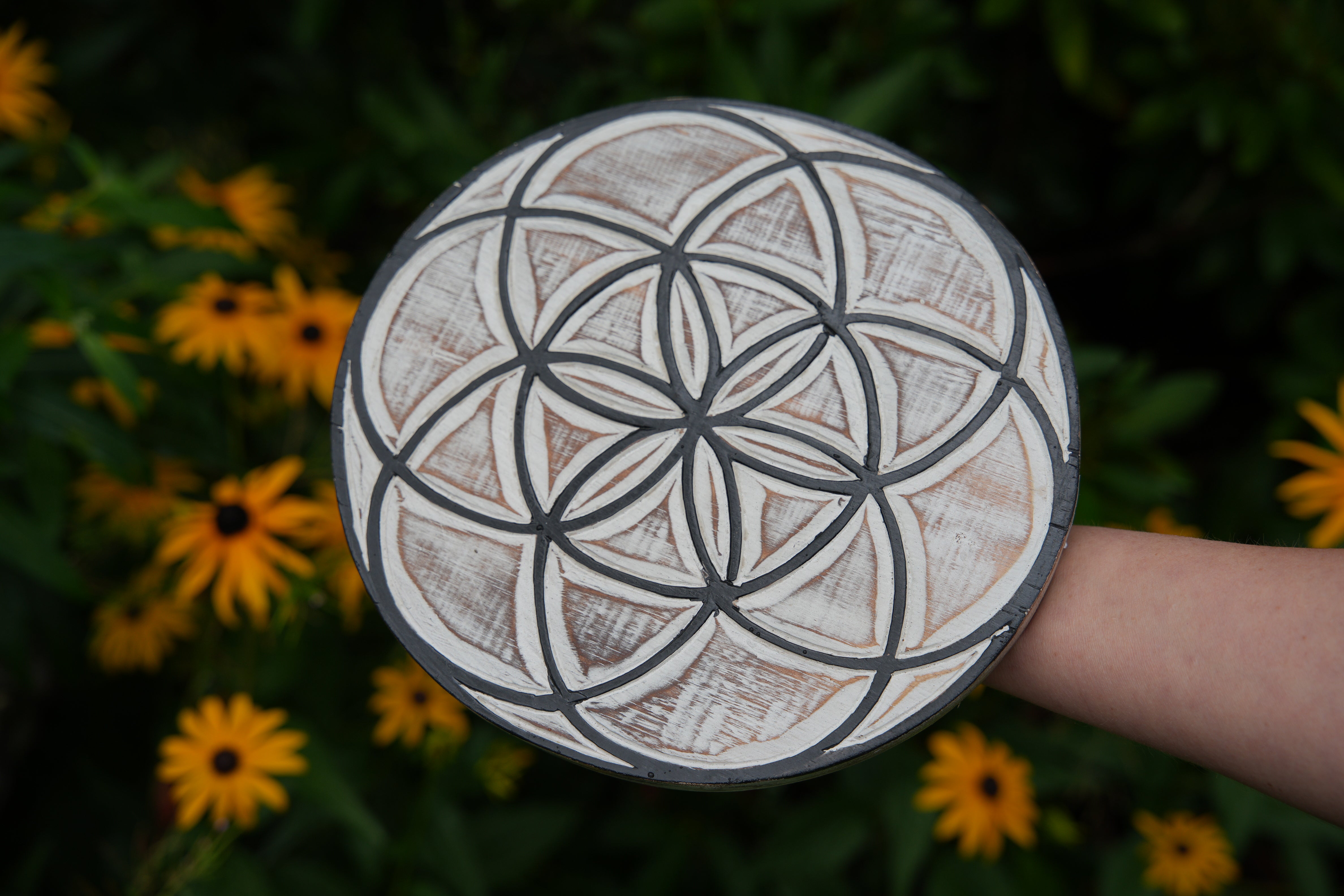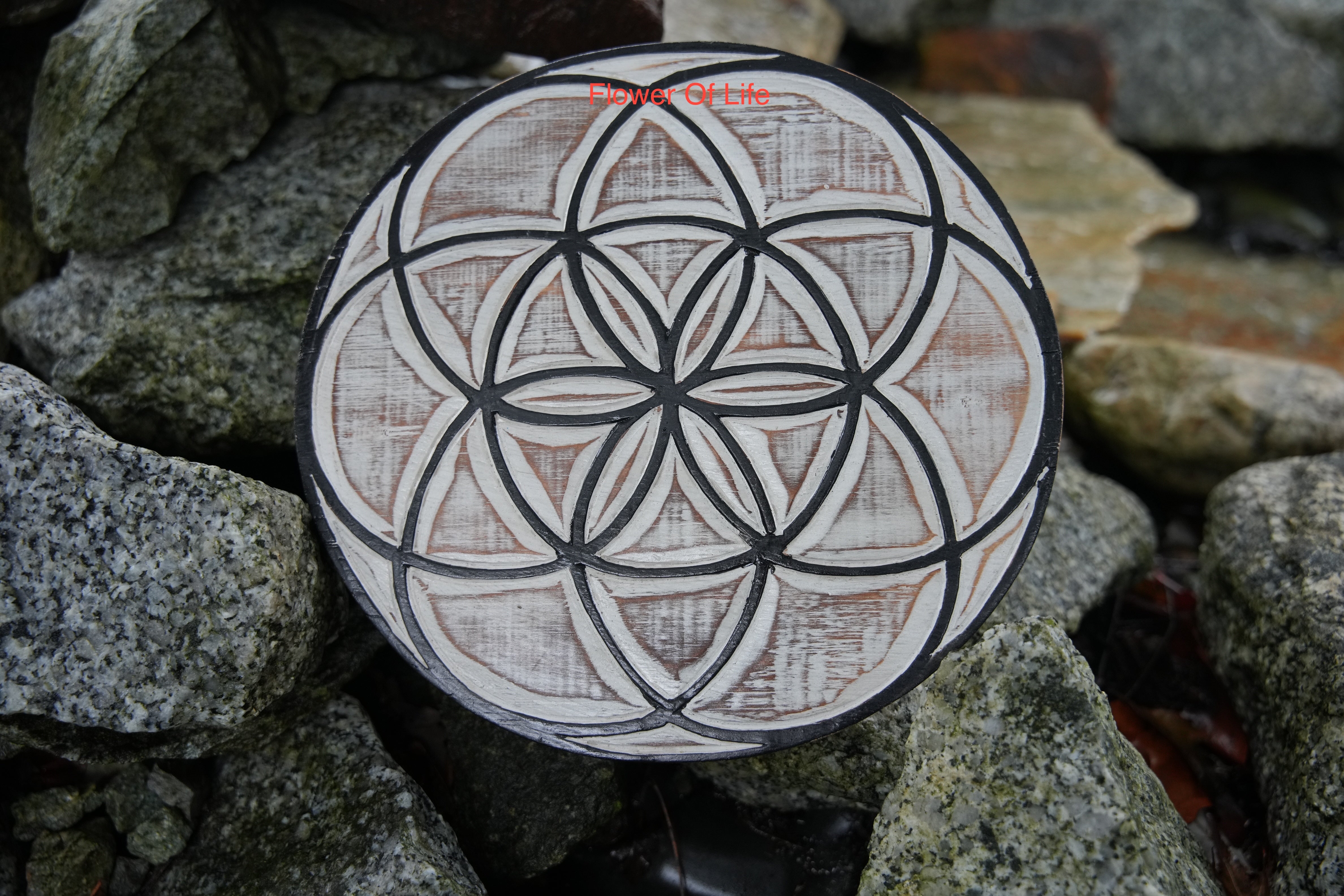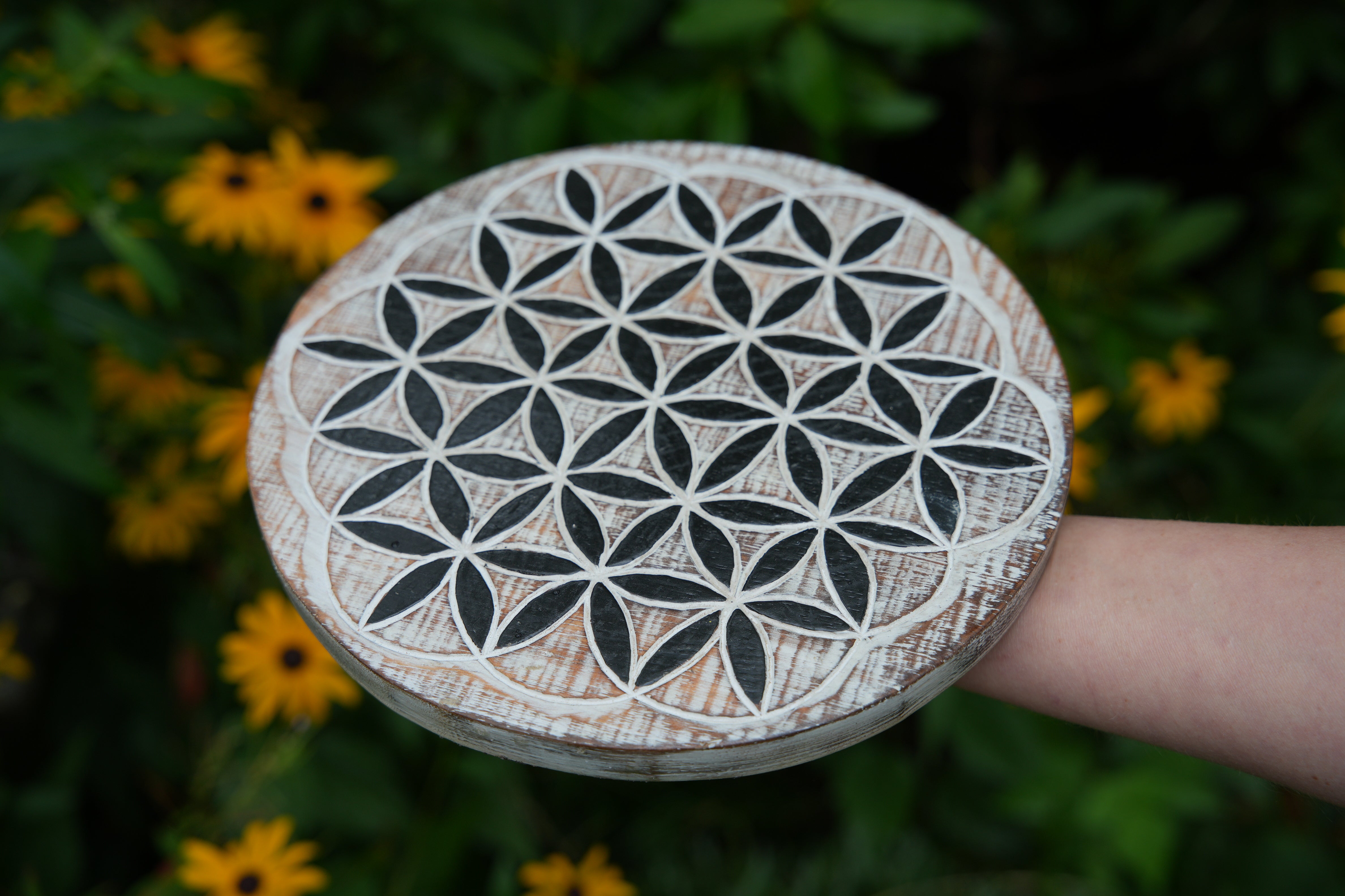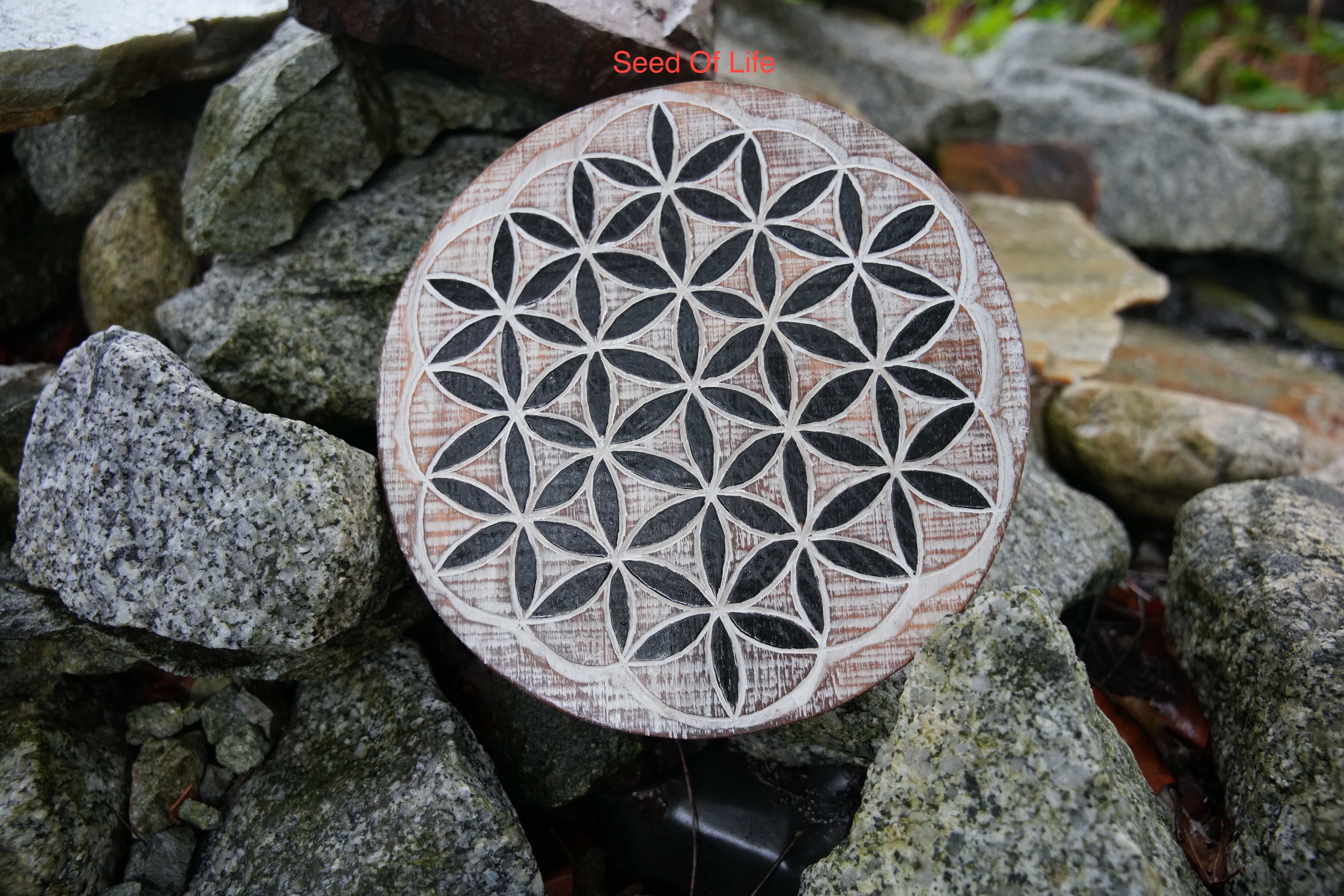 • Flower and Seed of Life Wood Crystal Grids - Made in Bali - Etched Wood Design for Energy Healing, Meditation, and Manifestation