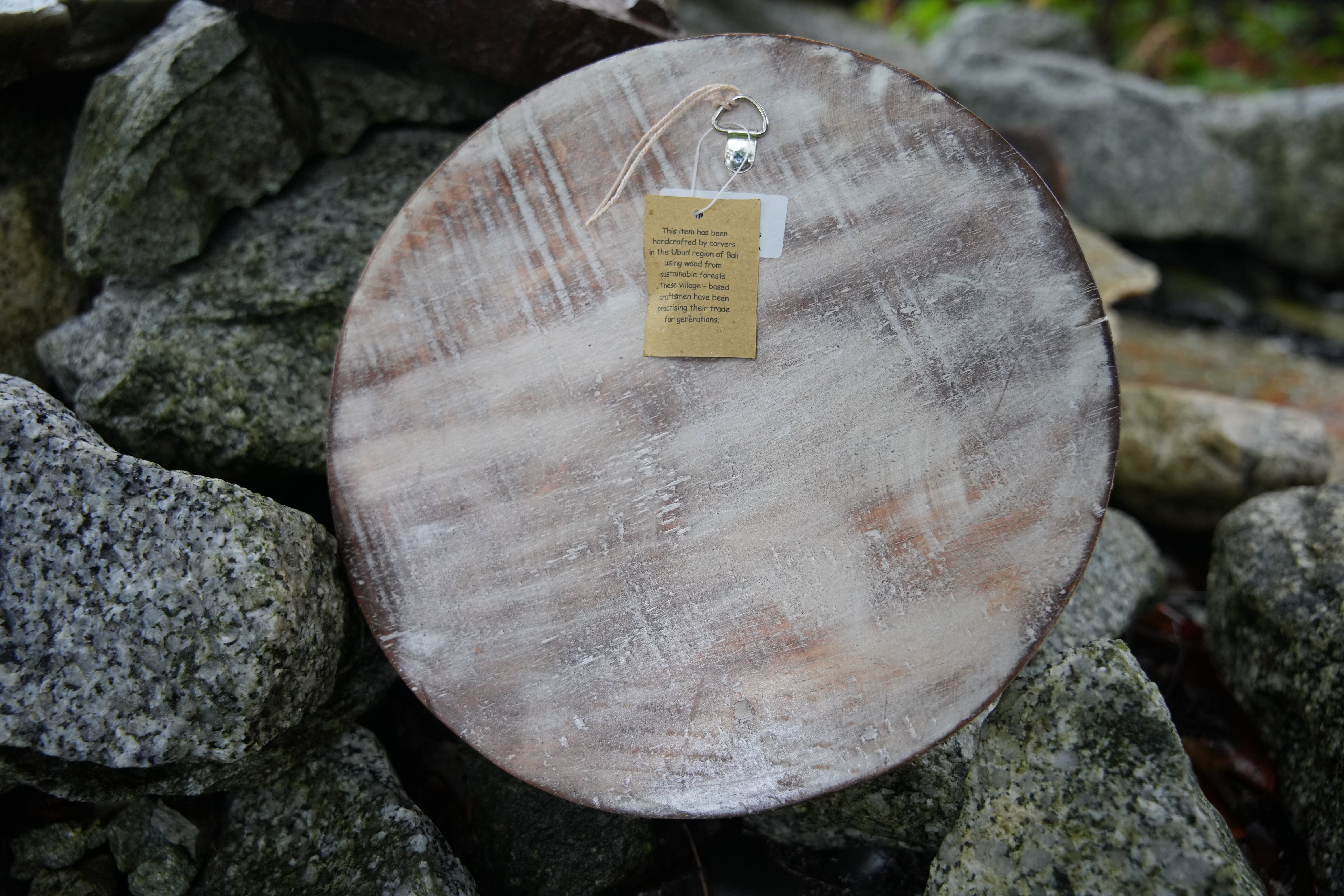 • Etched in natural wood for an earthy, organic feel