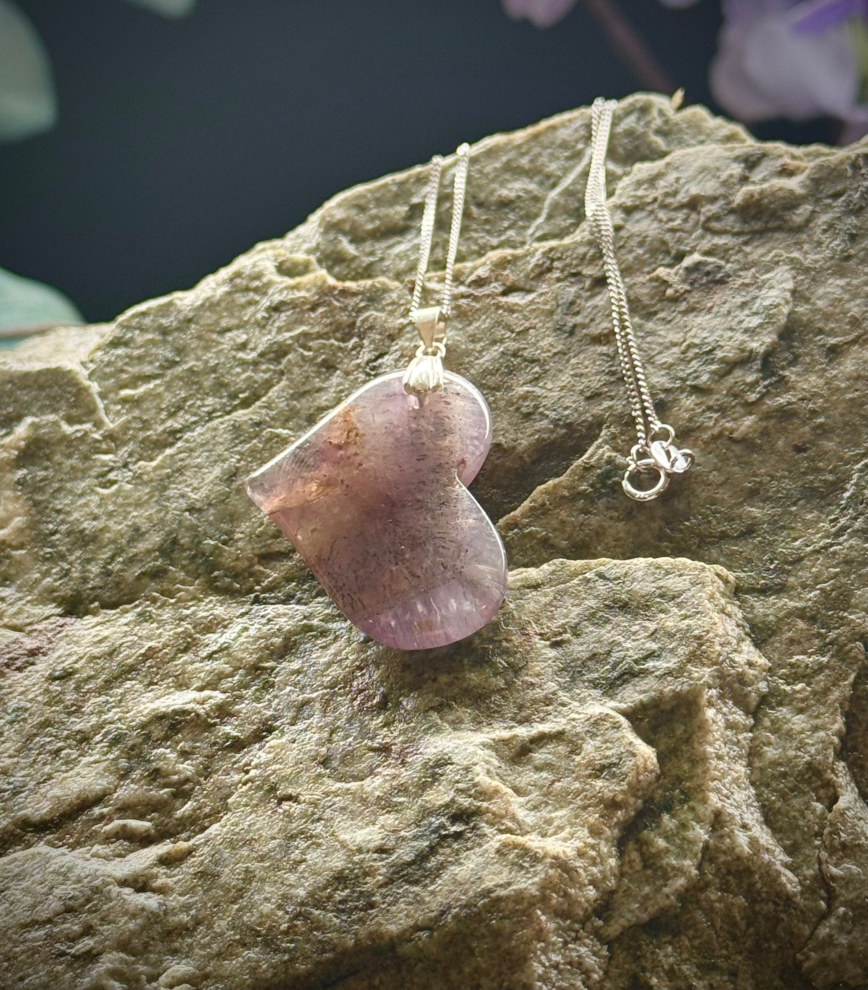 Natural Auralite 23 Heart Pendant Necklace, With or Without Chain, Authentic, Beautiful and Rare - The Celestial Boutique