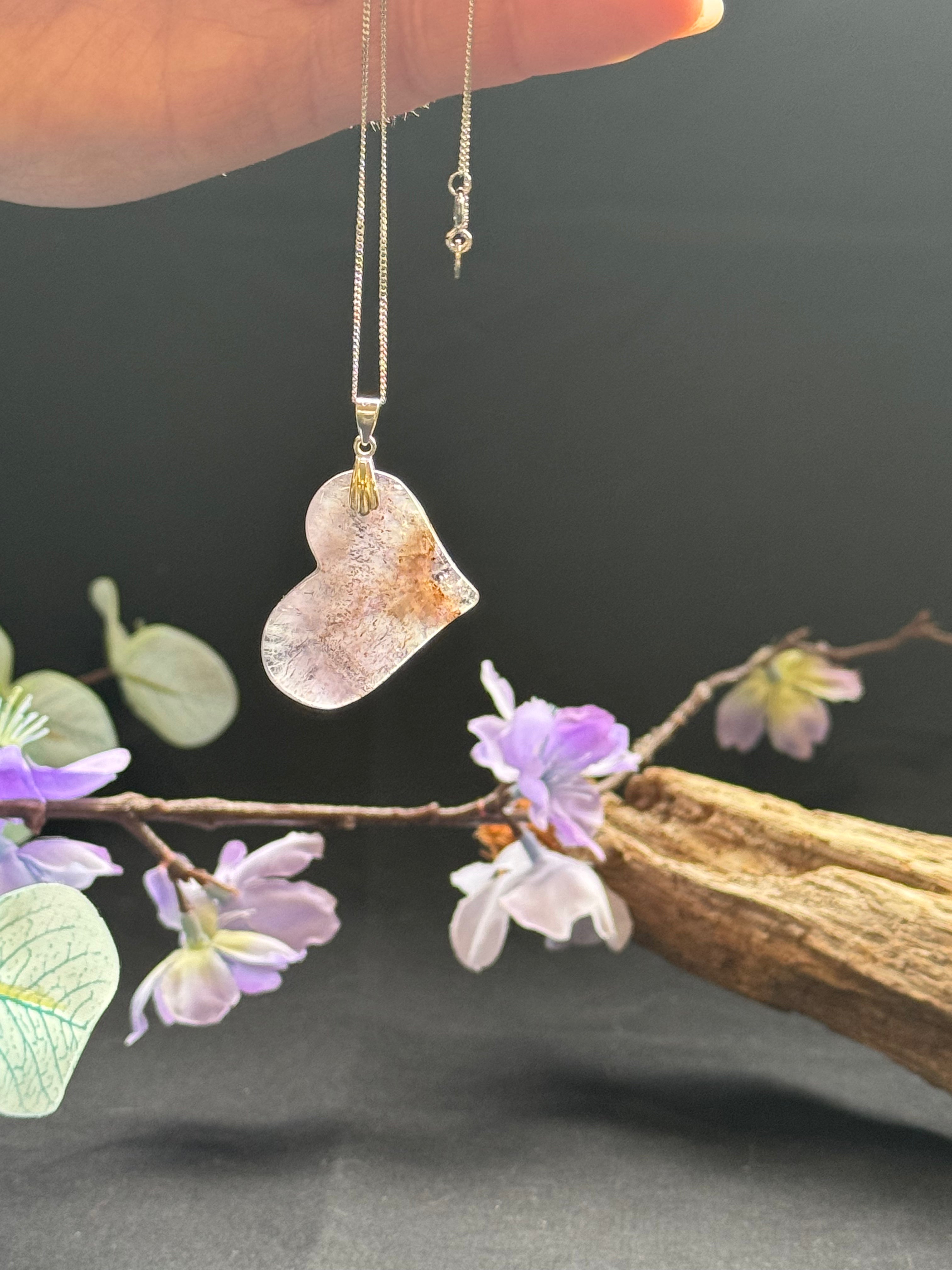 Open media with position 5 in modal popup Natural Auralite 23 Heart Pendant Necklace, With or Without Chain, Authentic, Beautiful and Rare - The Celestial Boutique