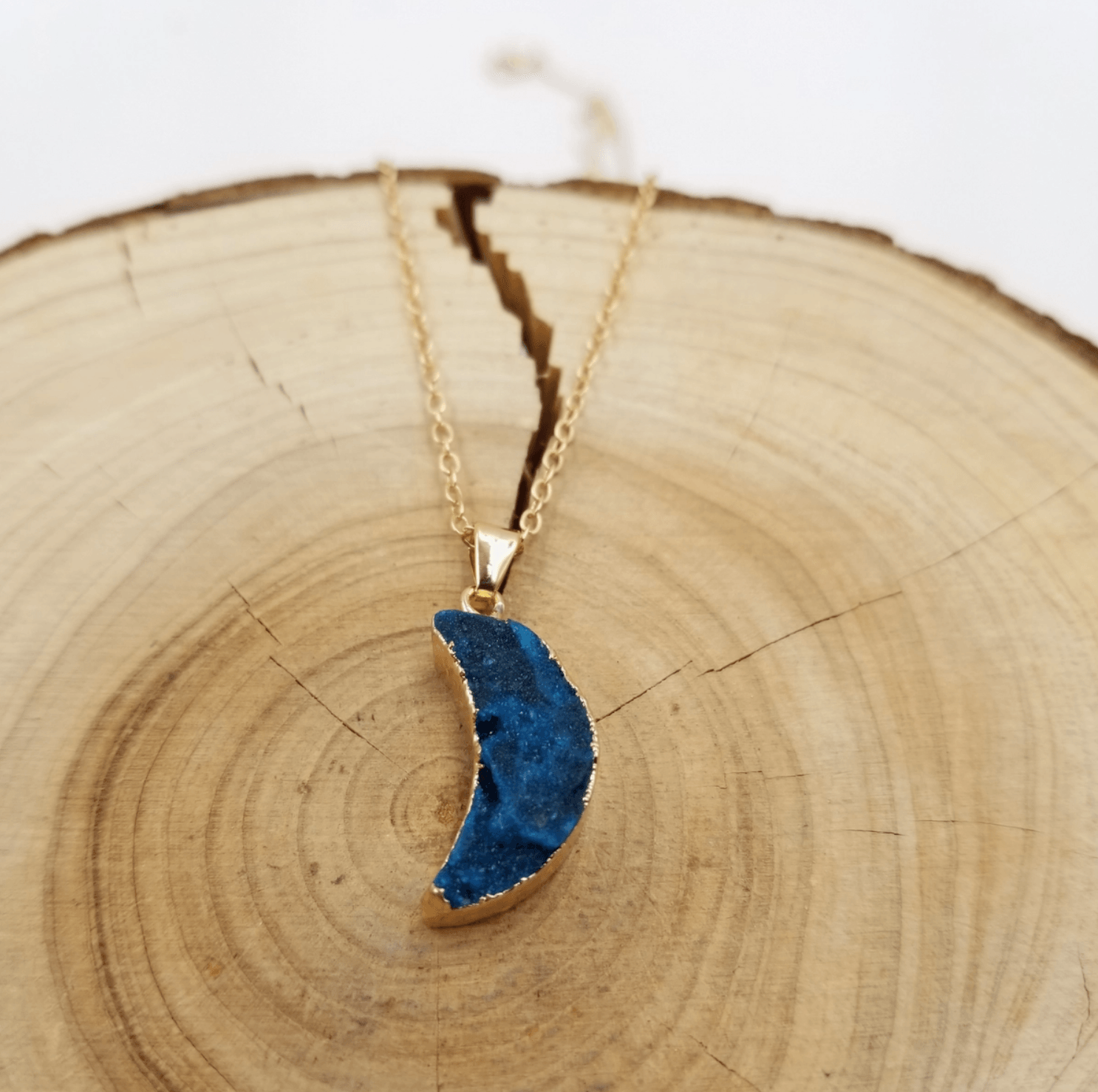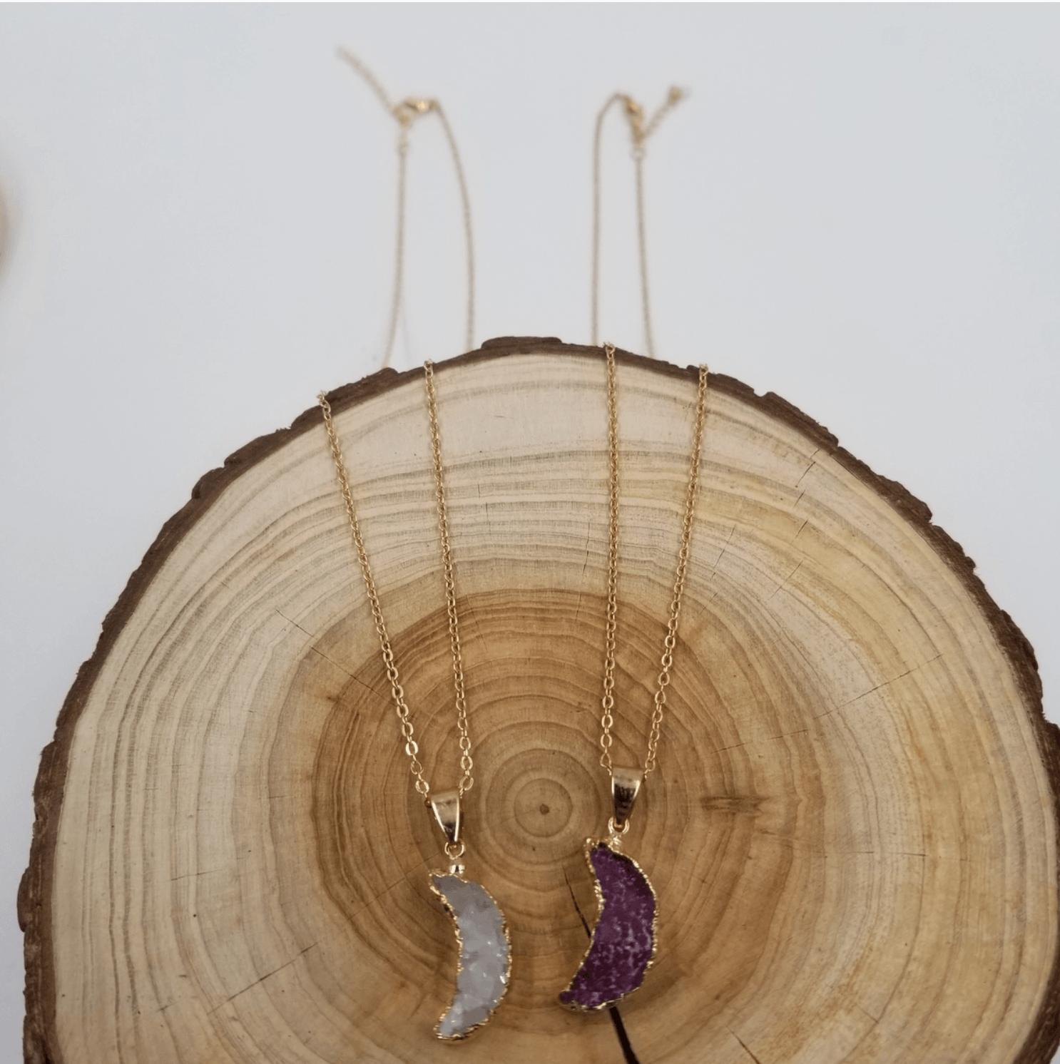 Gold Plated Natural Crystal Moon Pendant Necklace, Treated Amethyst, Elegant Jewelry, Healing Gemstone, Unique Gift