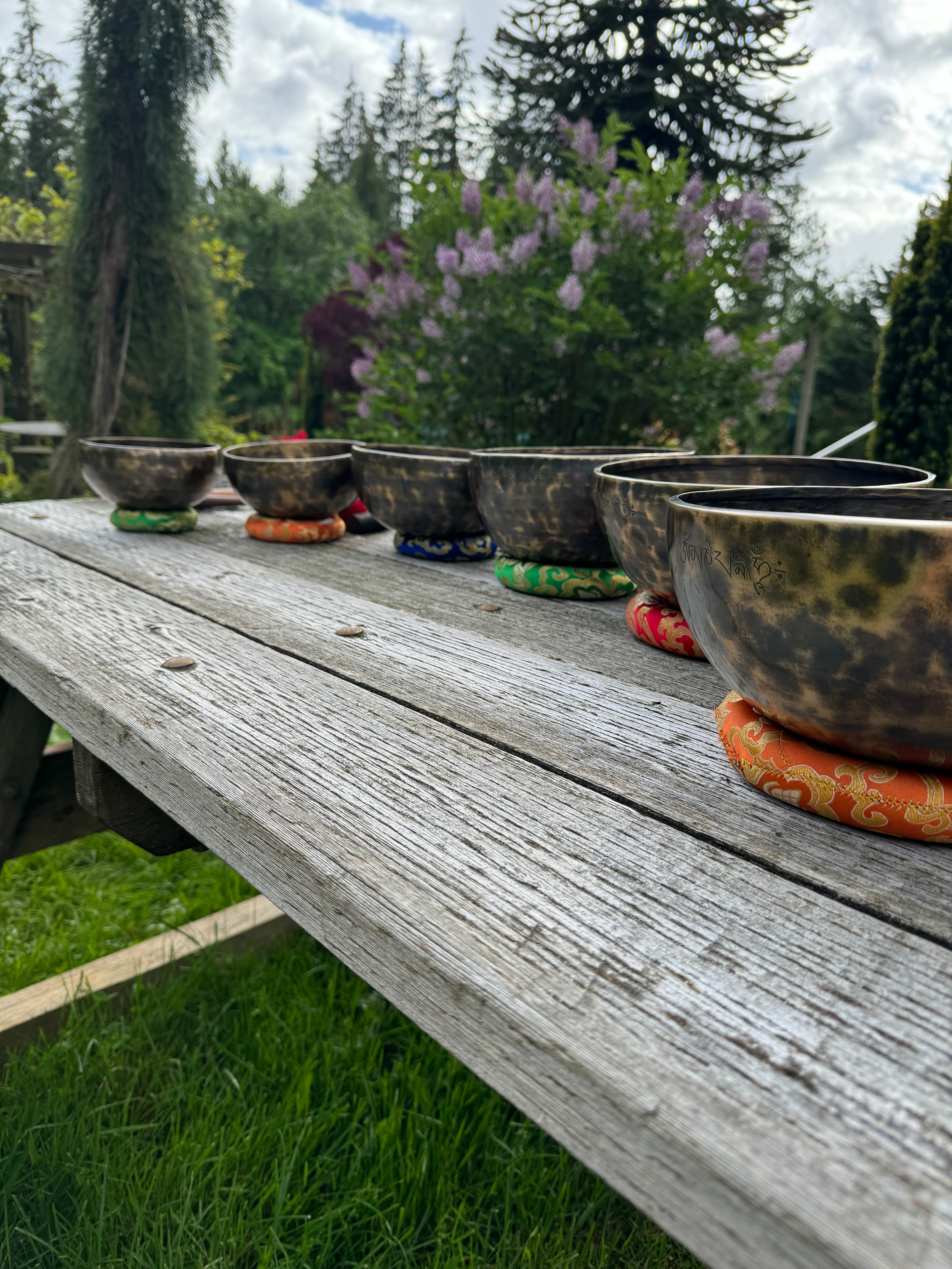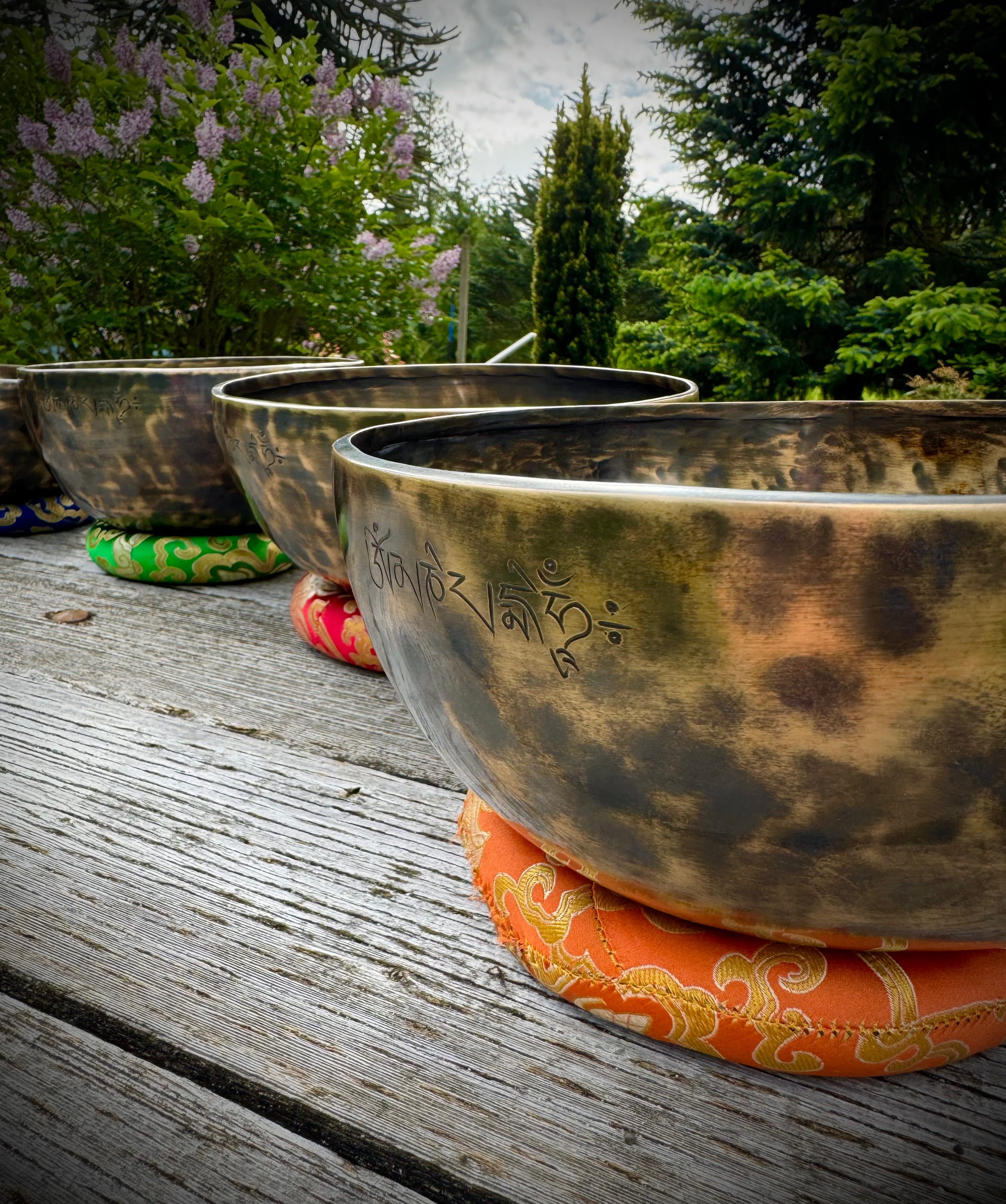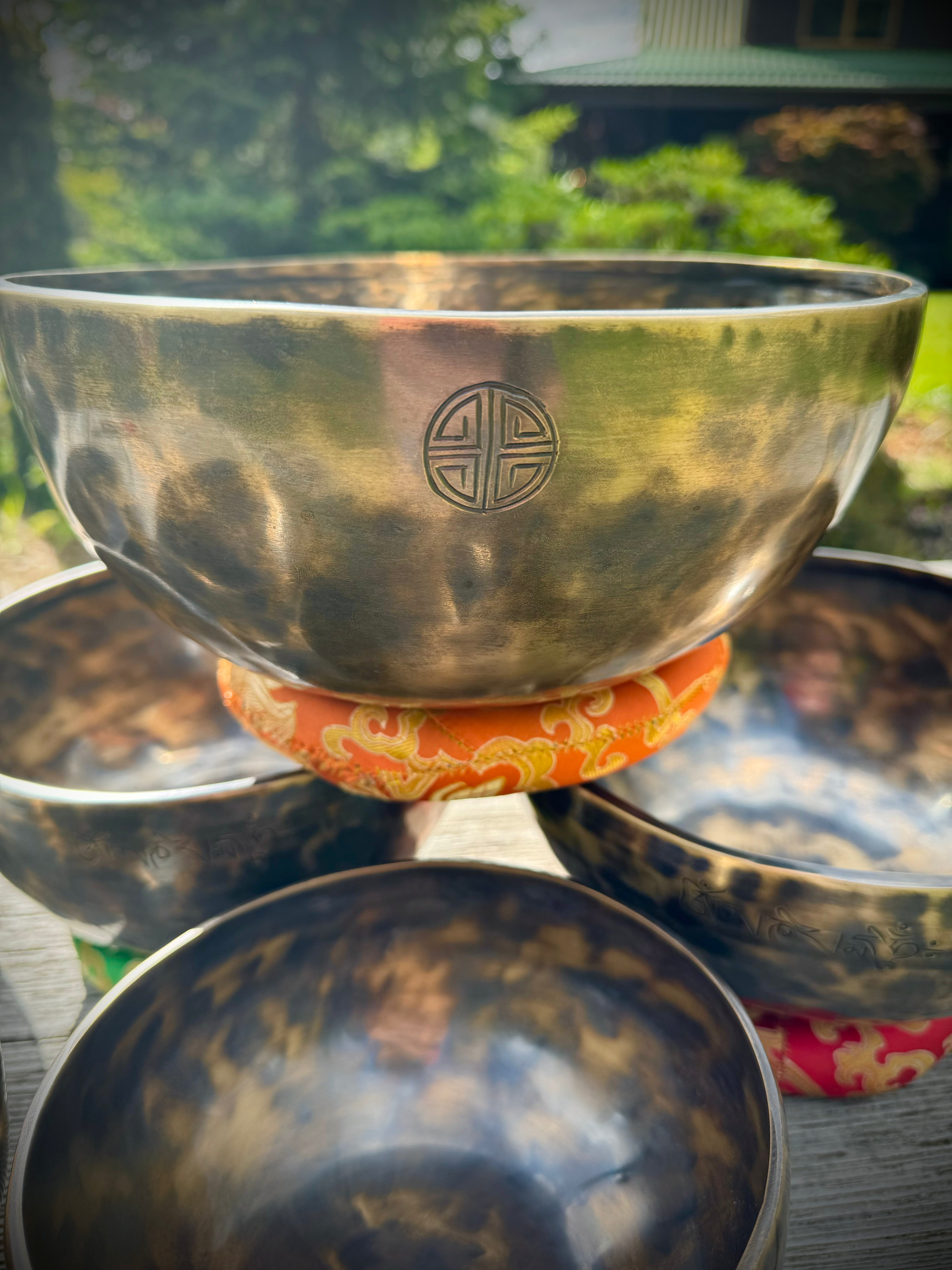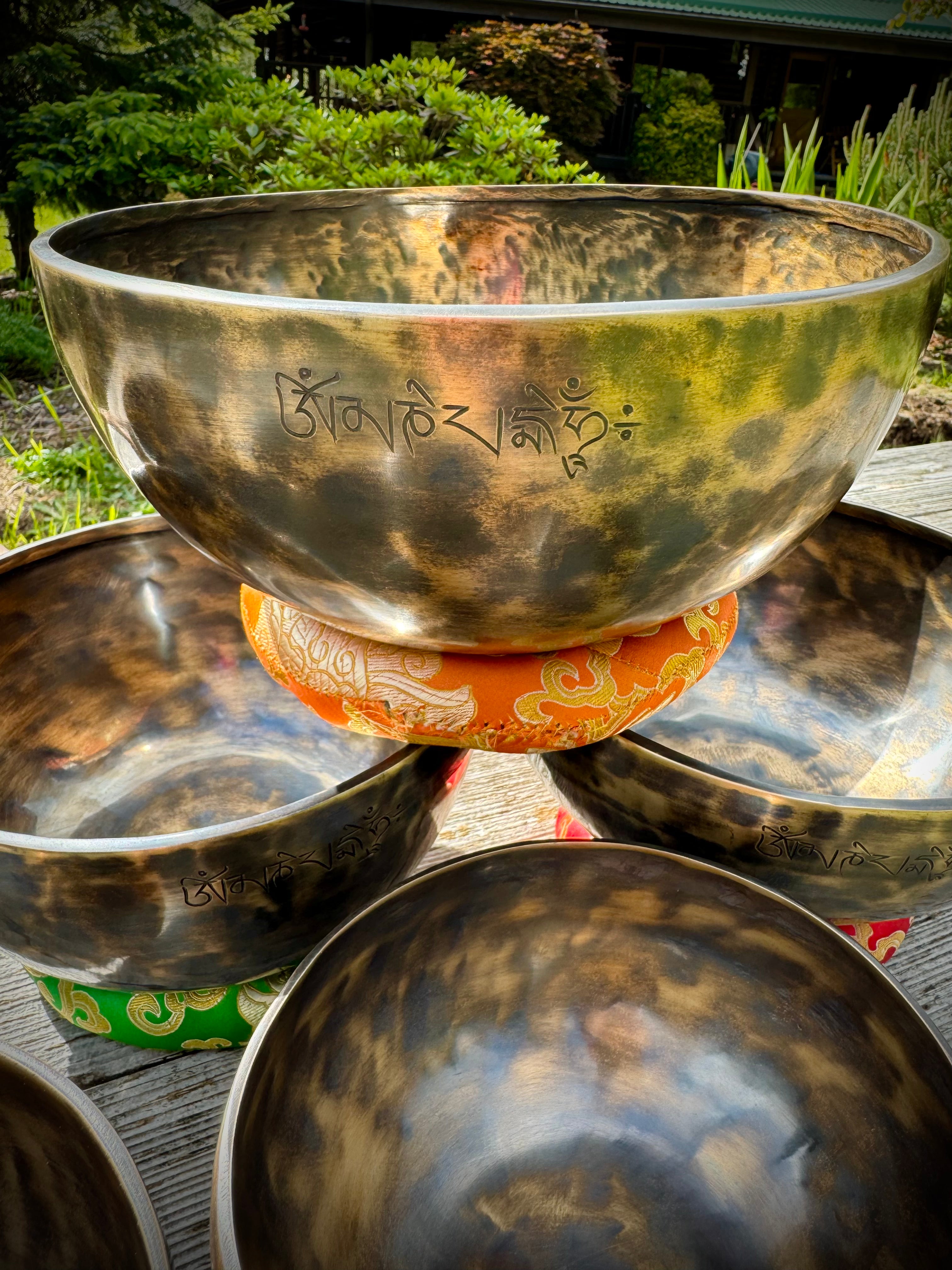 Discover the enchanting sounds of our Himalayan Full Moon Singing Bowl set, imported from Nepal . This hand-hammered, authentic singing bowl set is perfect for meditation and spiritual practices. These particular bowls are full moon singing bowls, Only made under the full moon designed to resonate with the energy and symbolism of the full moon harnessing its power and transformative qualities