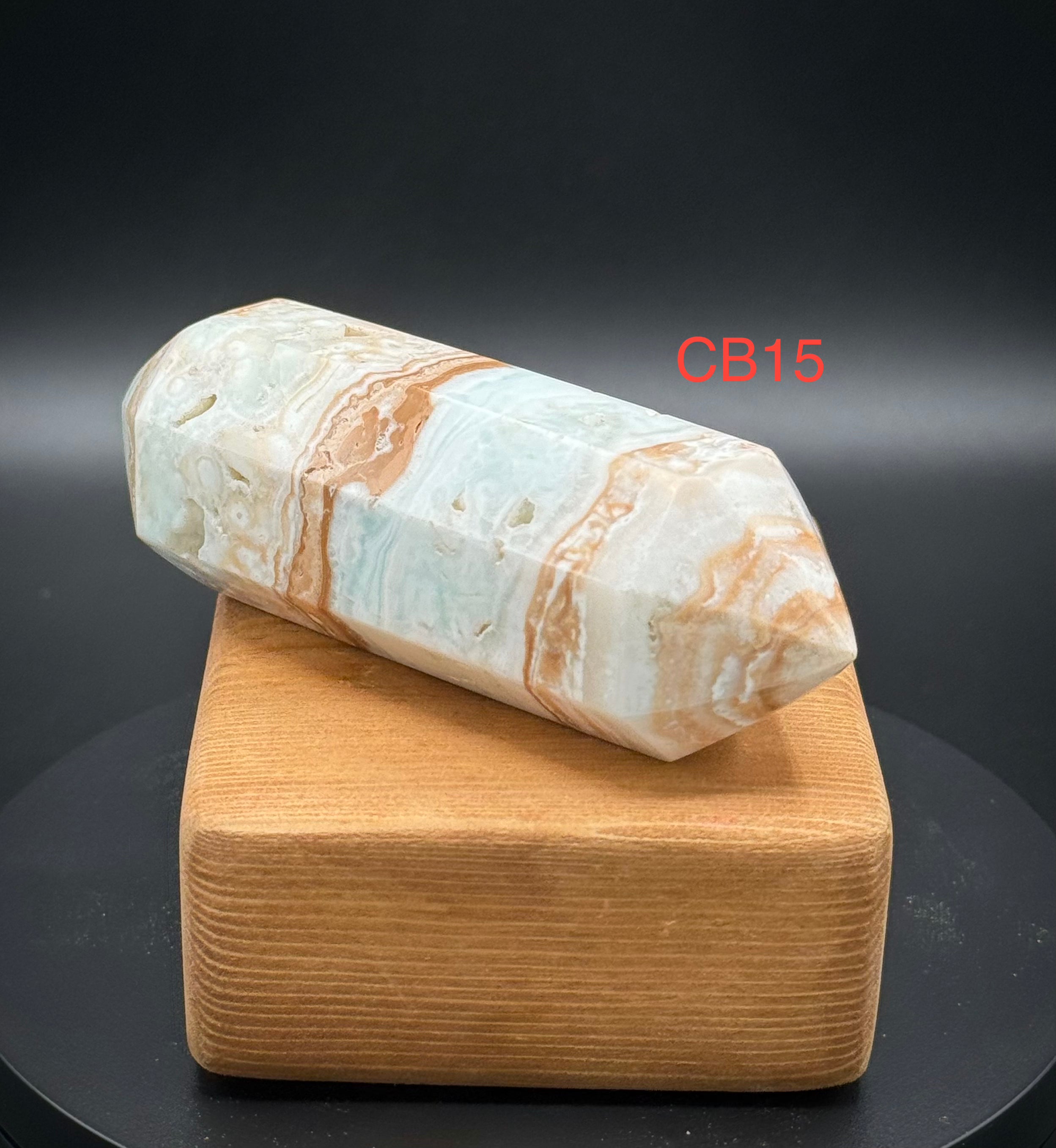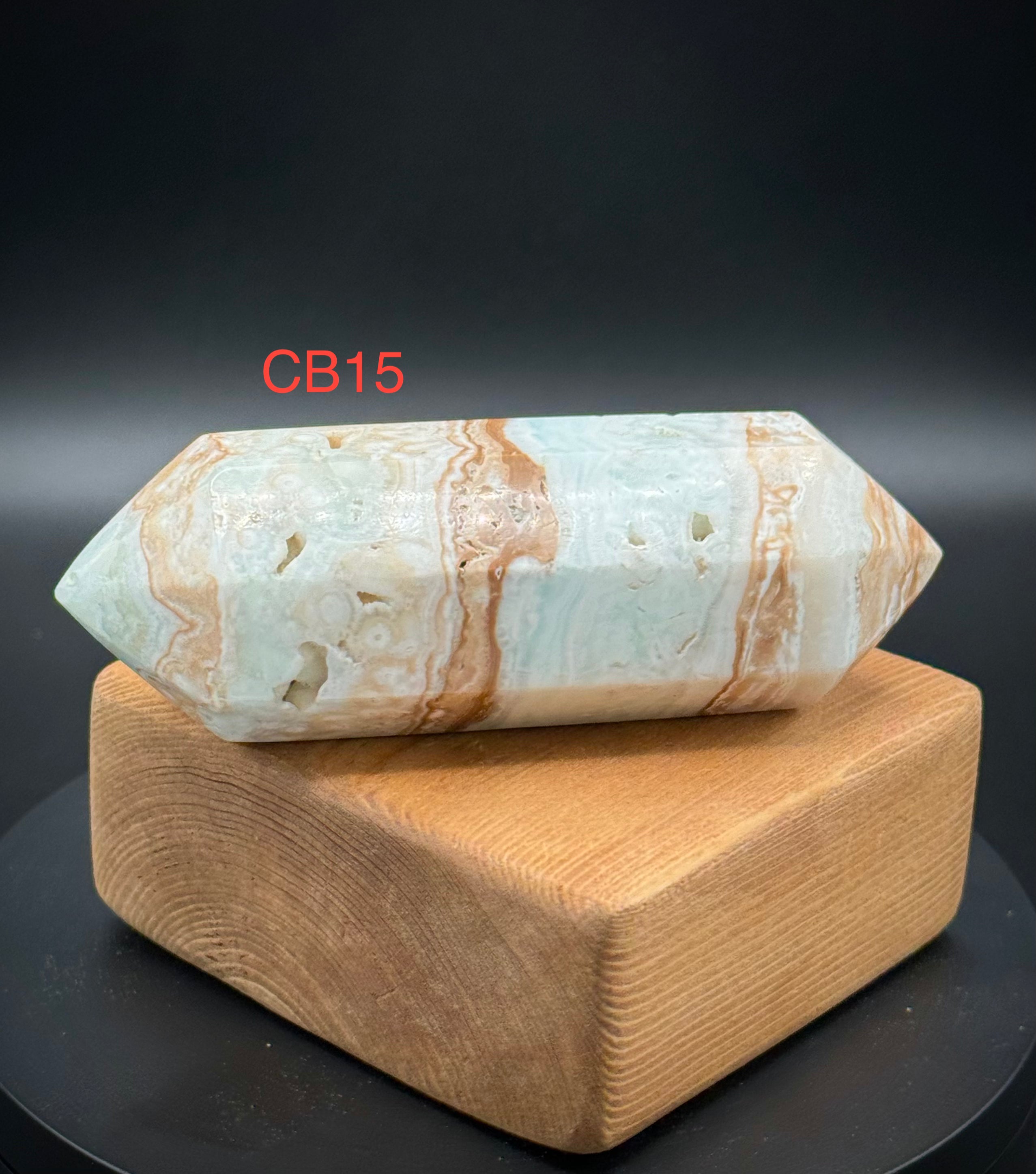 Elevate your collection with our Natural Druzy Caribbean Calcite Polished Large Double Terminated Points from Pakistan. These A++ quality pieces feature stunning blue and white hues with sparkling druzy accents, perfect for any decor.