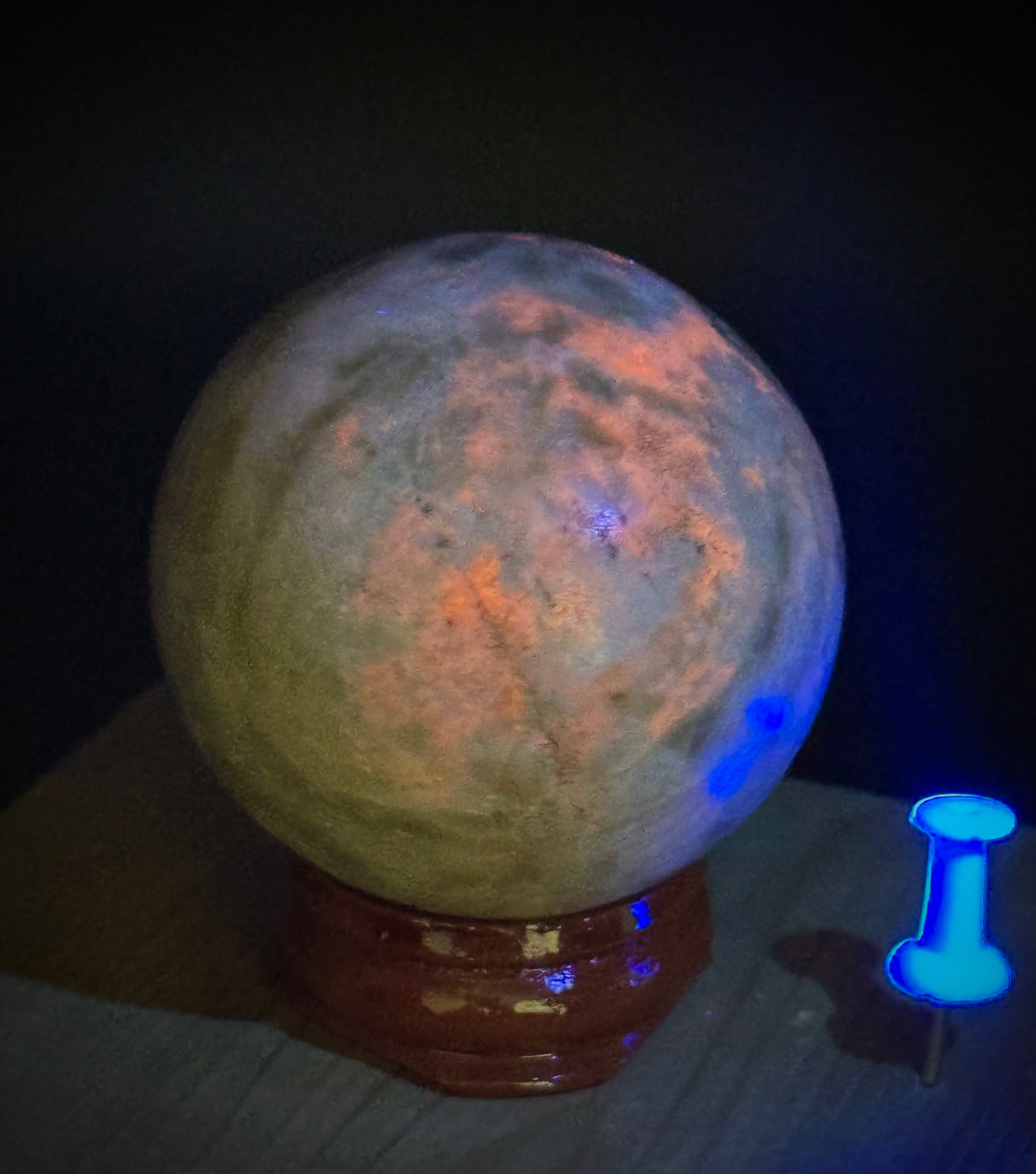 Enhance your collection with our Natural UV Reactive Hackmanite Sphere from Afghanistan. This beautiful 45MM A++ quality sphere glows under UV light, perfect for display, meditation, and energy work.