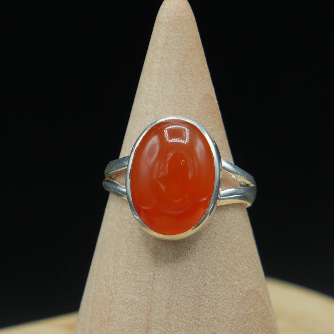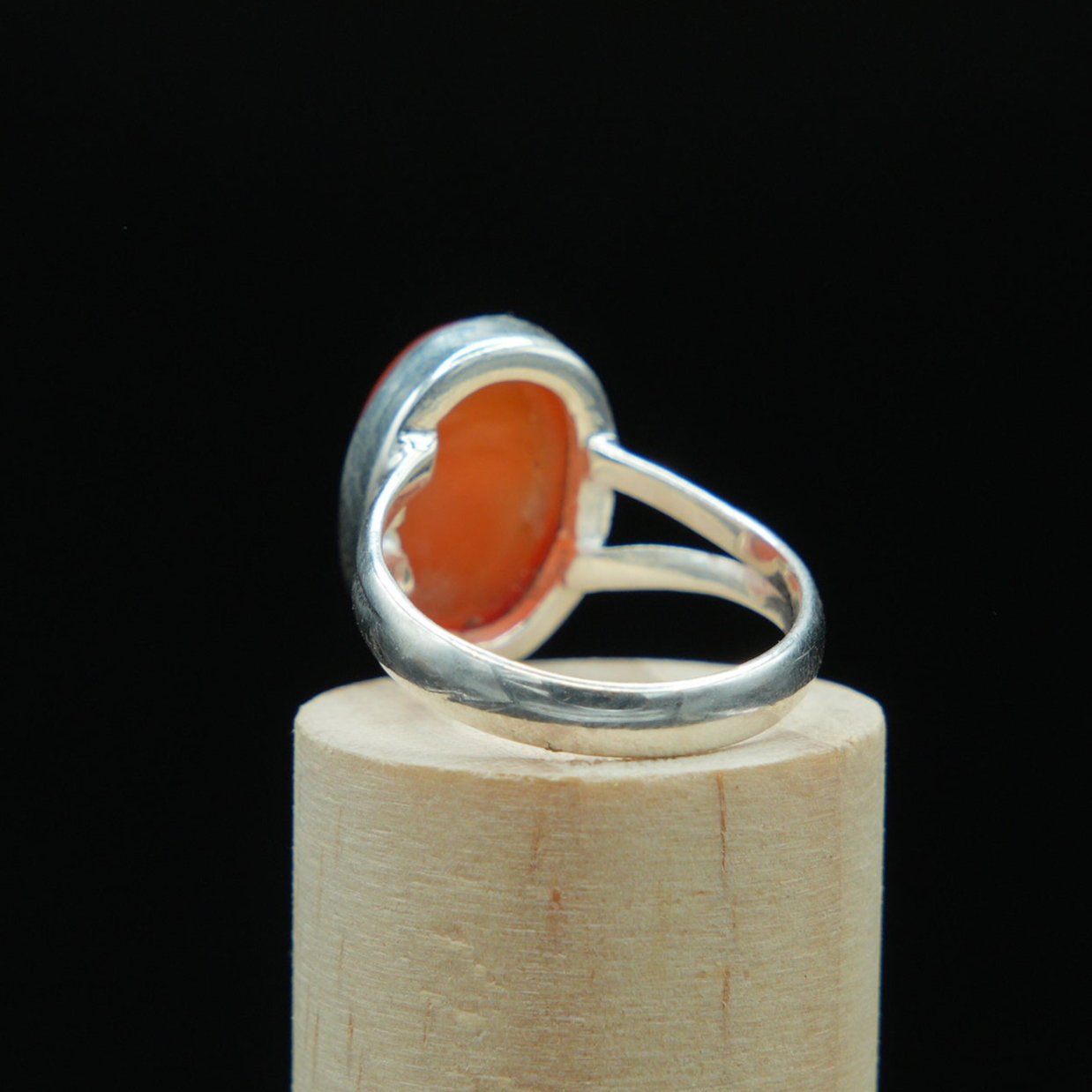 This handmade Carnelian ring in sterling silver radiates celestial elegance and vibrant energy. Carnelian is known for boosting courage, creativity, and motivation, making it a powerful stone for personal empowerment. The rich orange hue of Carnelian, set in sterling silver, creates a striking piece that inspires confidence and vitality. Perfect as a meaningful gift or a unique addition to your jewelry collection.
