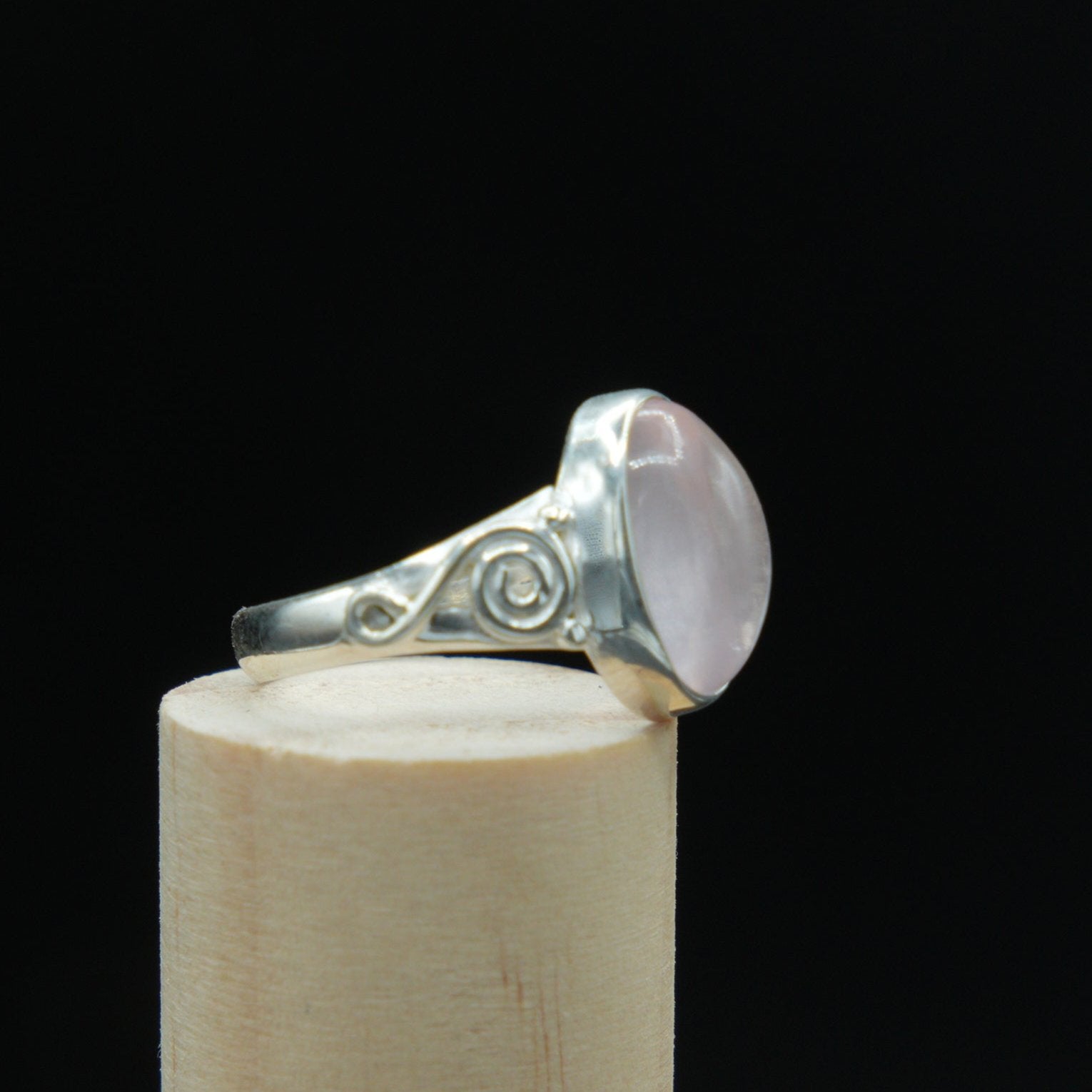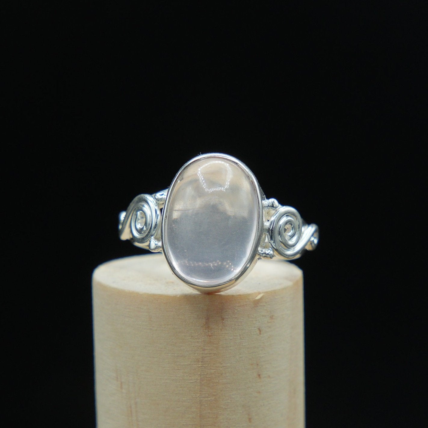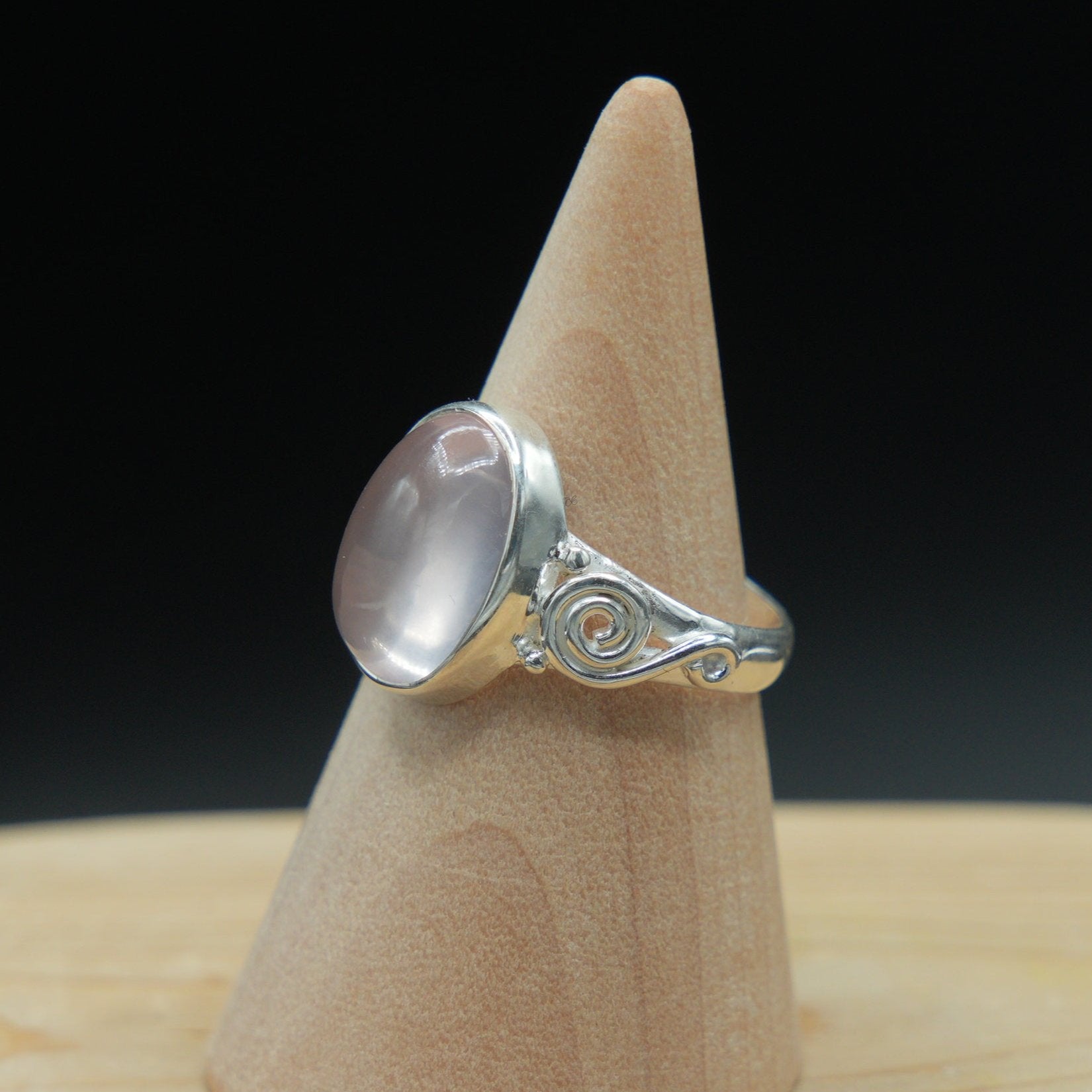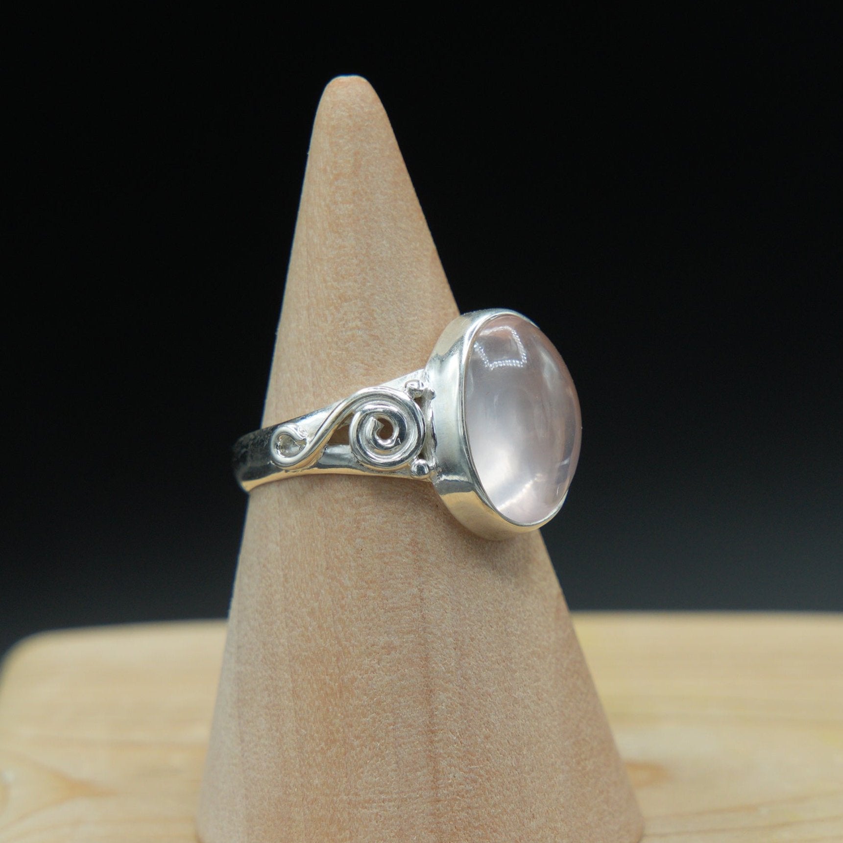 Rose Quartz Ring in Sterling Silver, Handmade Jewelry, Size 8, Celestial Elegance, Love and Healing Gift, R574