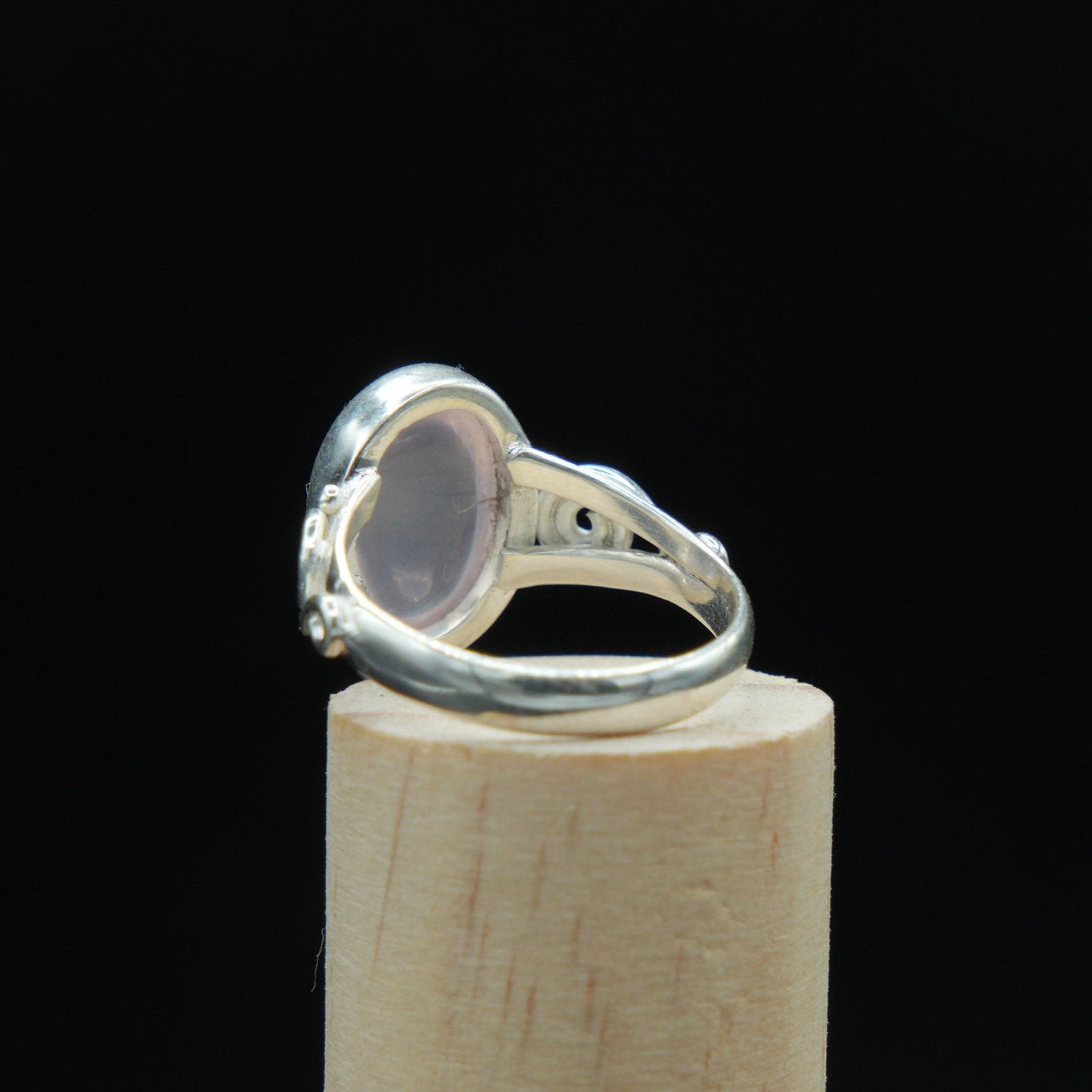 • Rose Quartz Ring in Sterling Silver, Handmade Jewelry, Size 8, Celestial Elegance, Love and Healing Gift, R574