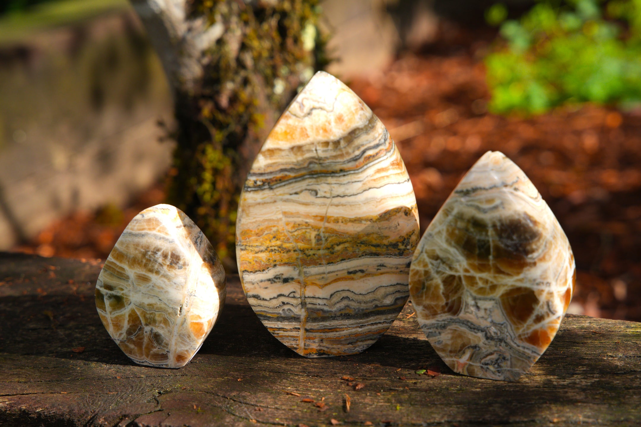 Beautiful Bumble Bee Jasper Gemstone Leaf Carving – Handcrafted Elegance, Various Options