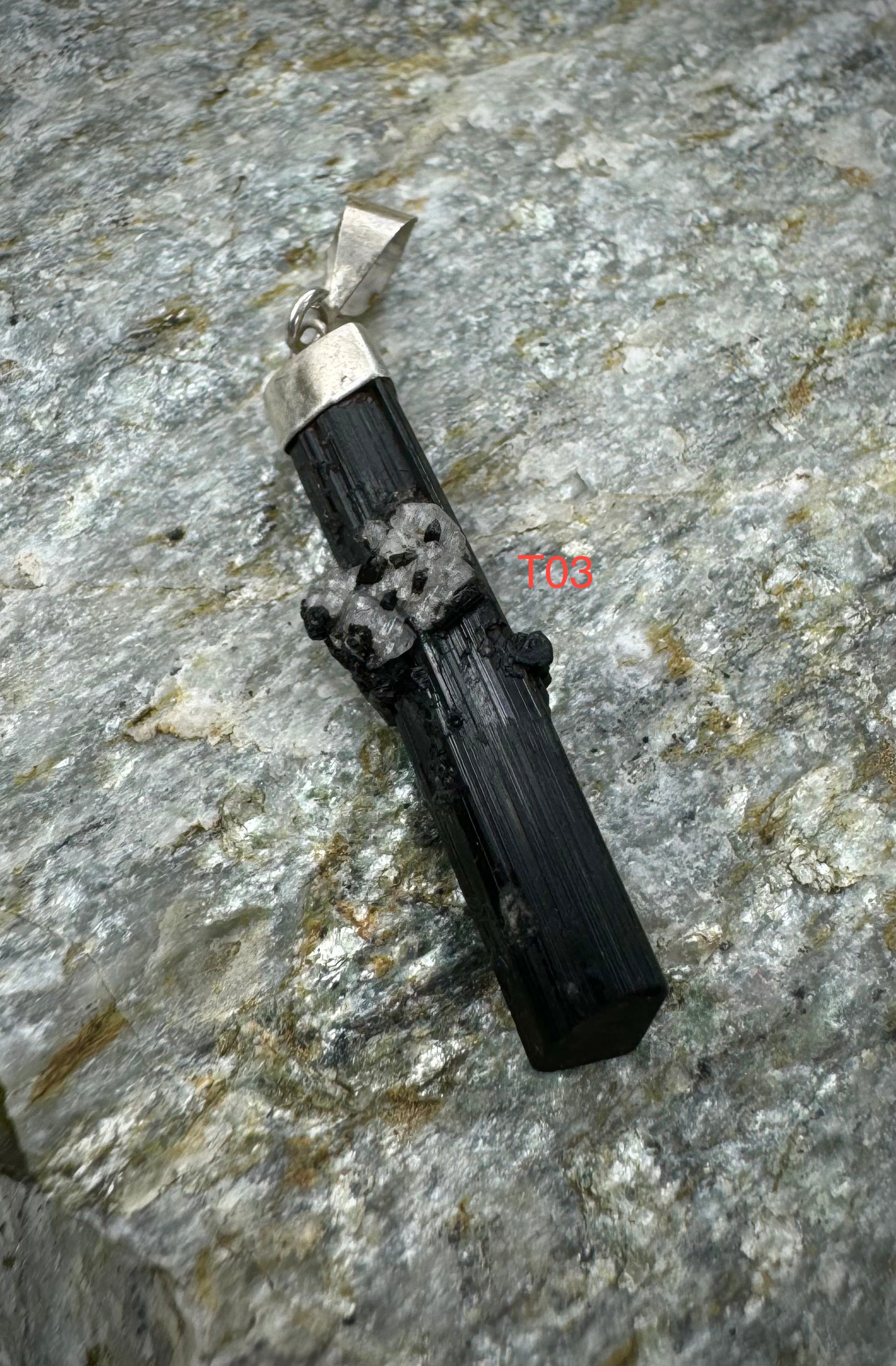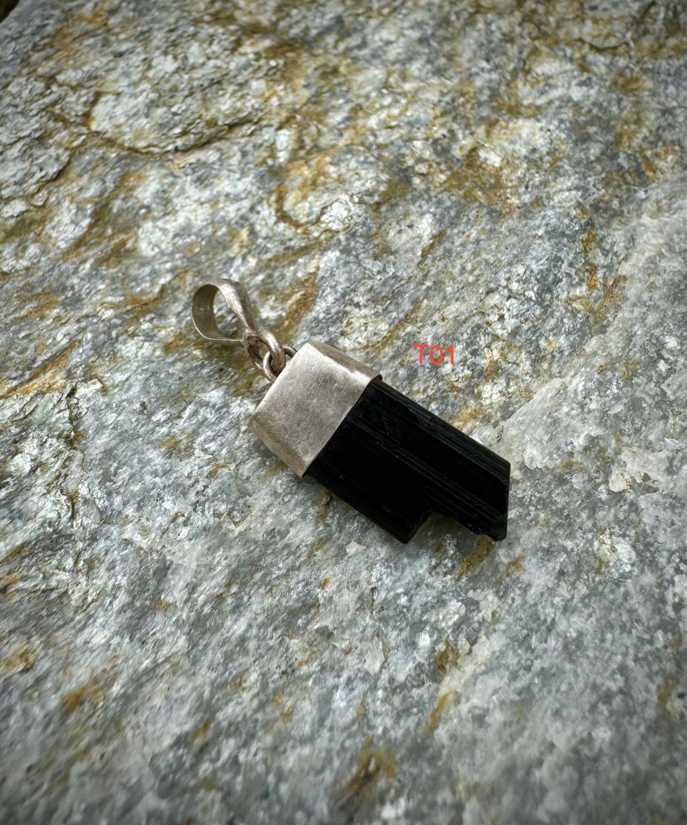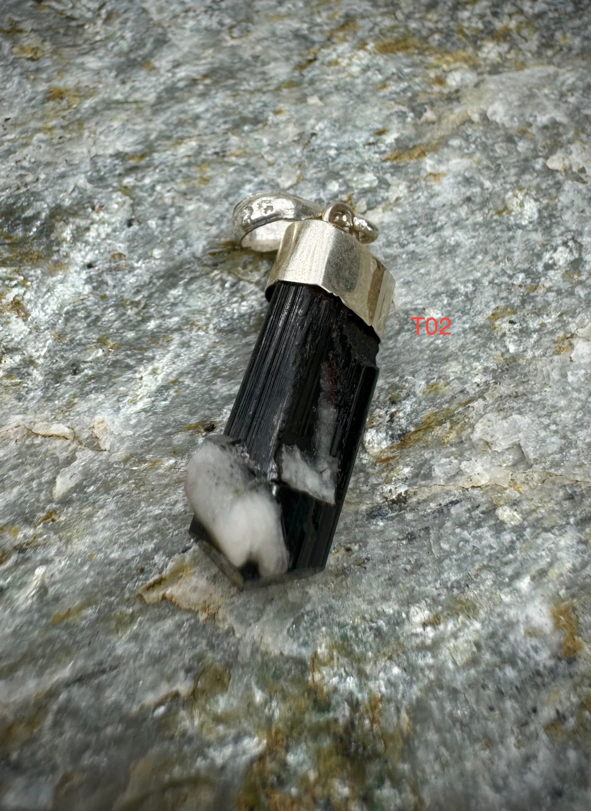 Pendentif tourmaline noire brute en argent sterling .925, du Pakistan, beaux bijoux en pierres précieuses