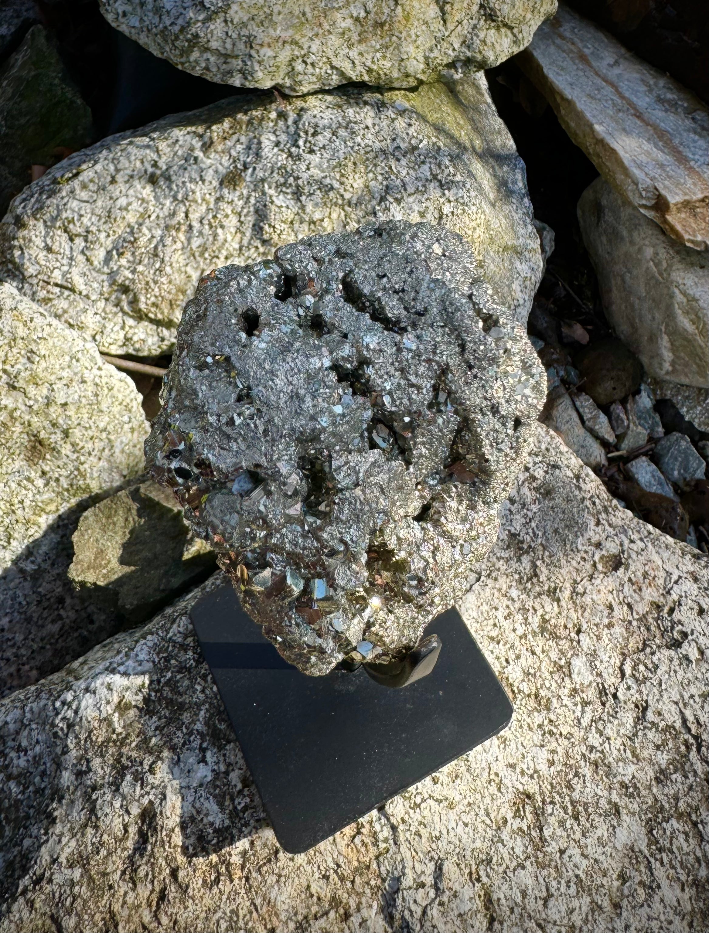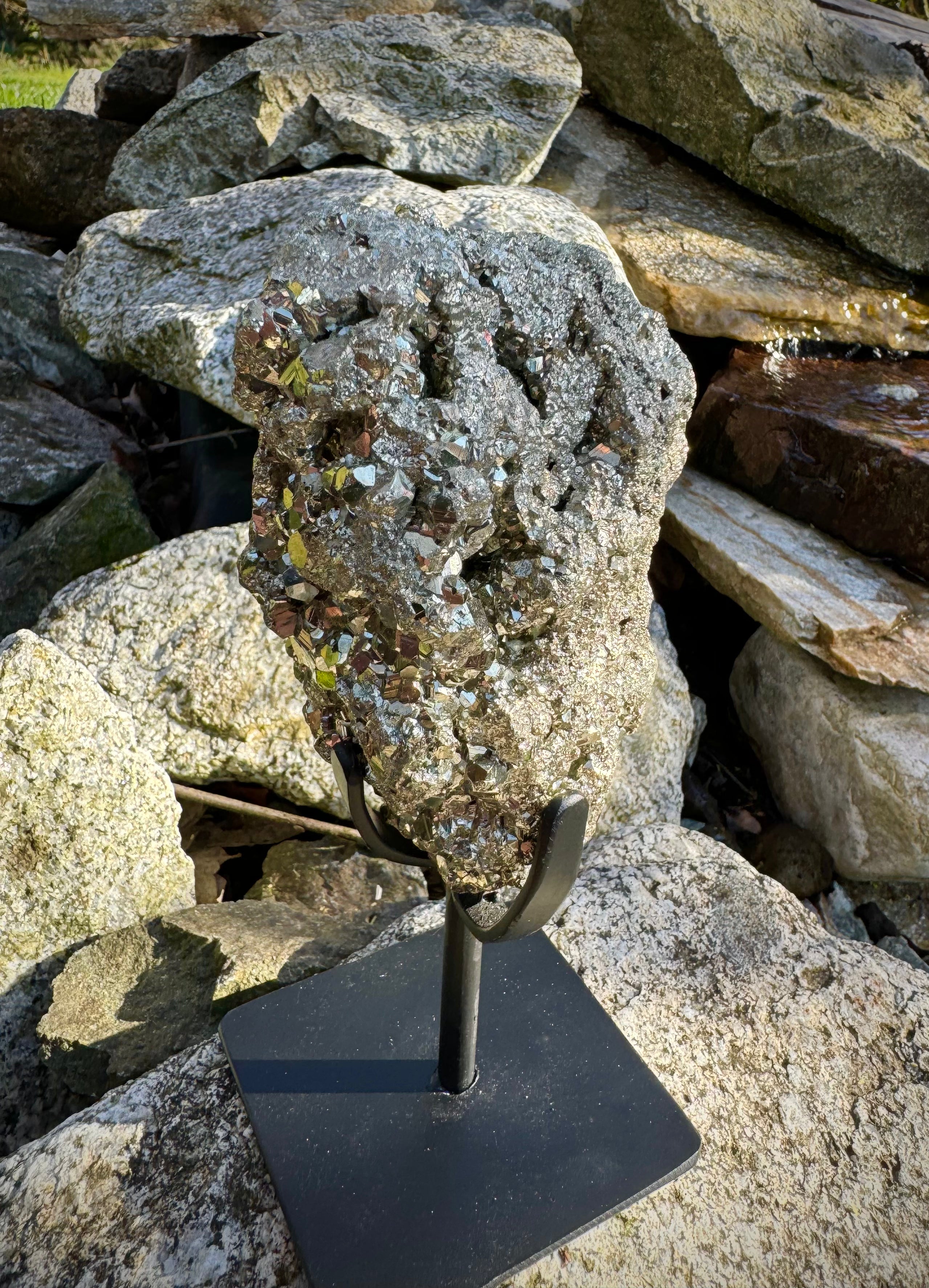 Incroyable amas de pyrite brésilienne sur support, 1,15 KG, qualité A+ Super Extra, pièce de collection unique