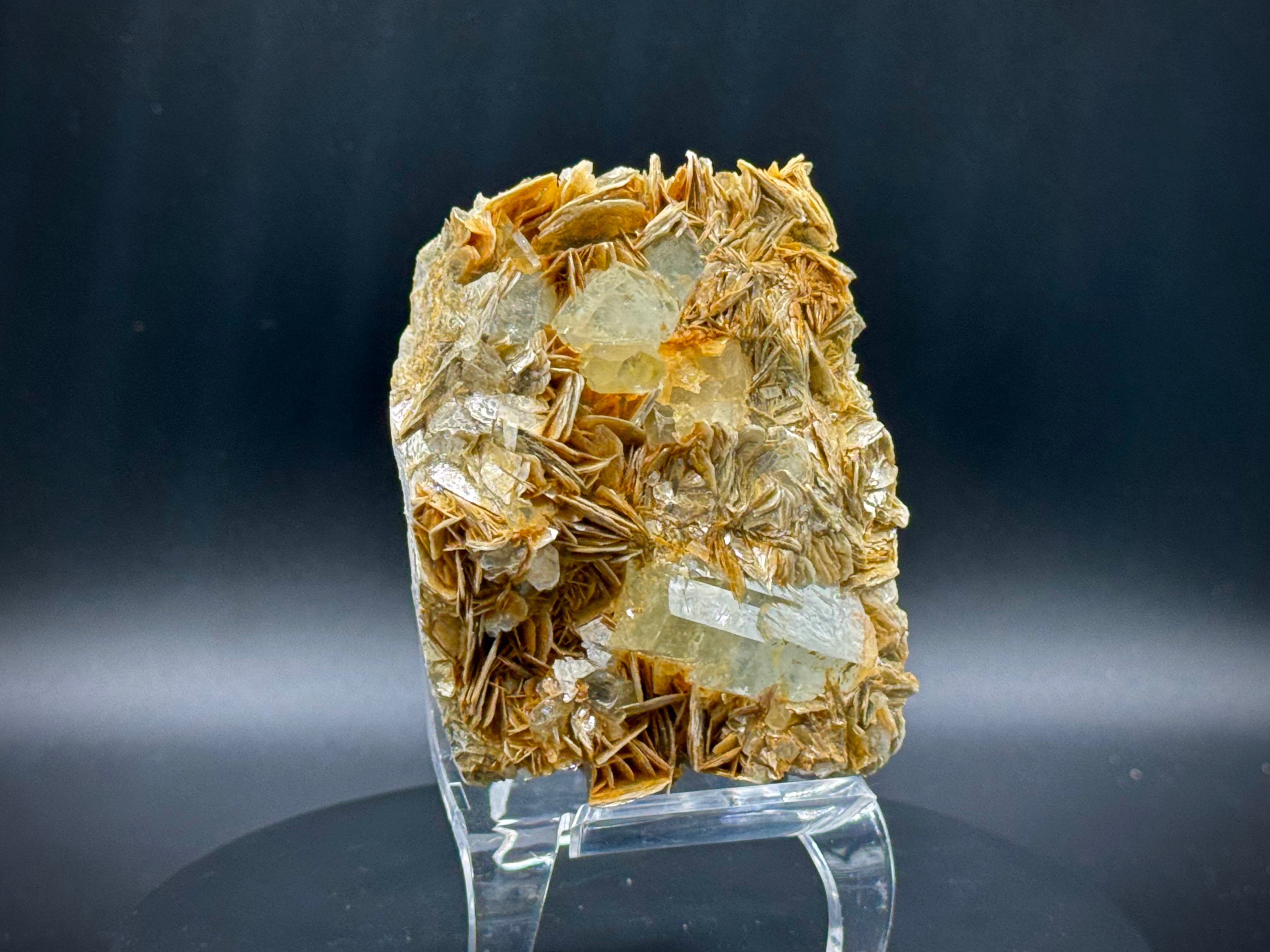 Améliorez votre collection avec notre belle aigue-marine avec cluster de mica du Pakistan. Cette pièce de qualité A++ supérieure présente de superbes cristaux d'aigue-marine entrelacés de mica scintillant, parfaits pour l'affichage, la méditation et la guérison.