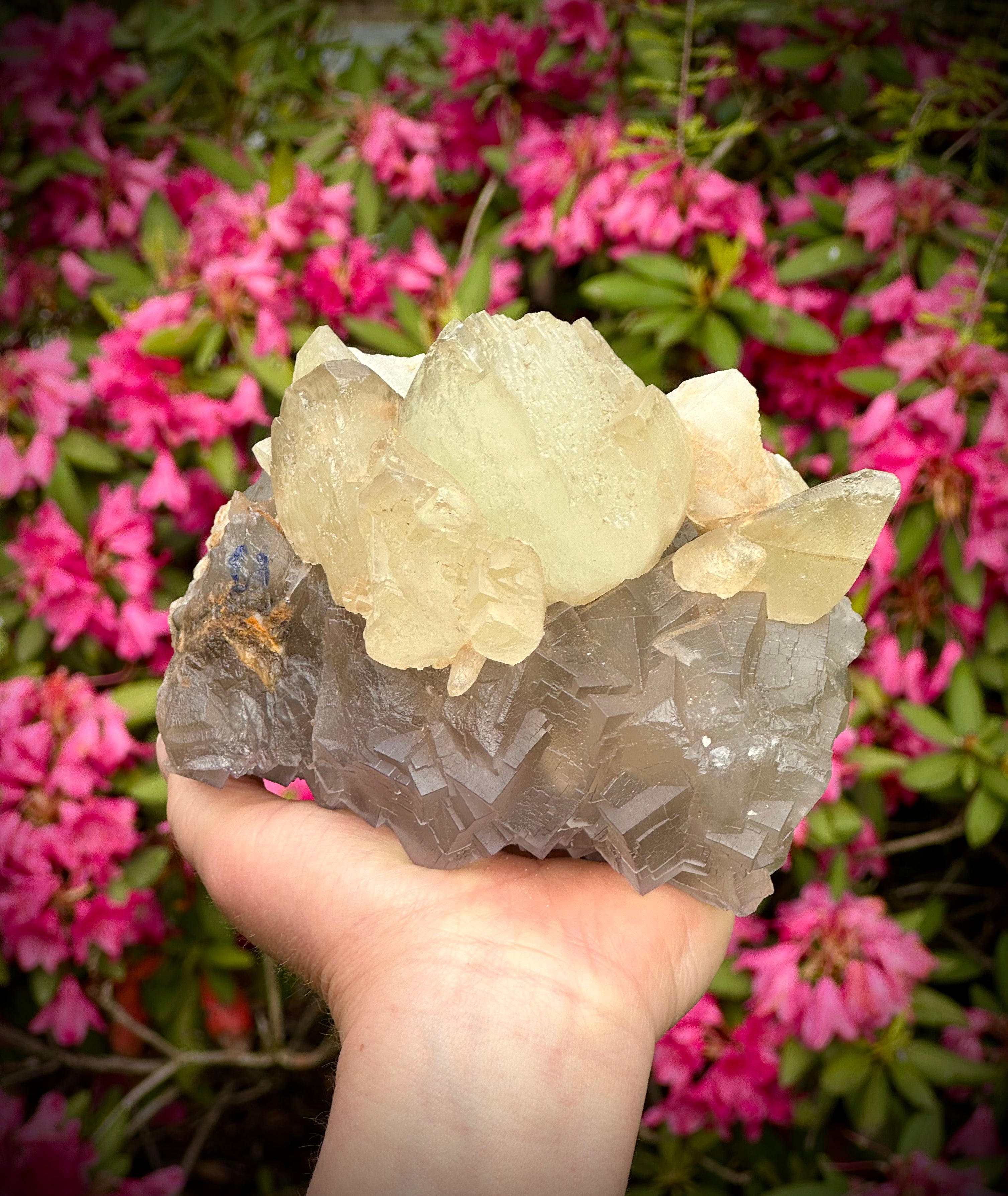 Huge Purple Cubic Fluorite with Calcite Specimen from Pakistan, 2530 Grams, A++ Quality - The Celestial Boutique