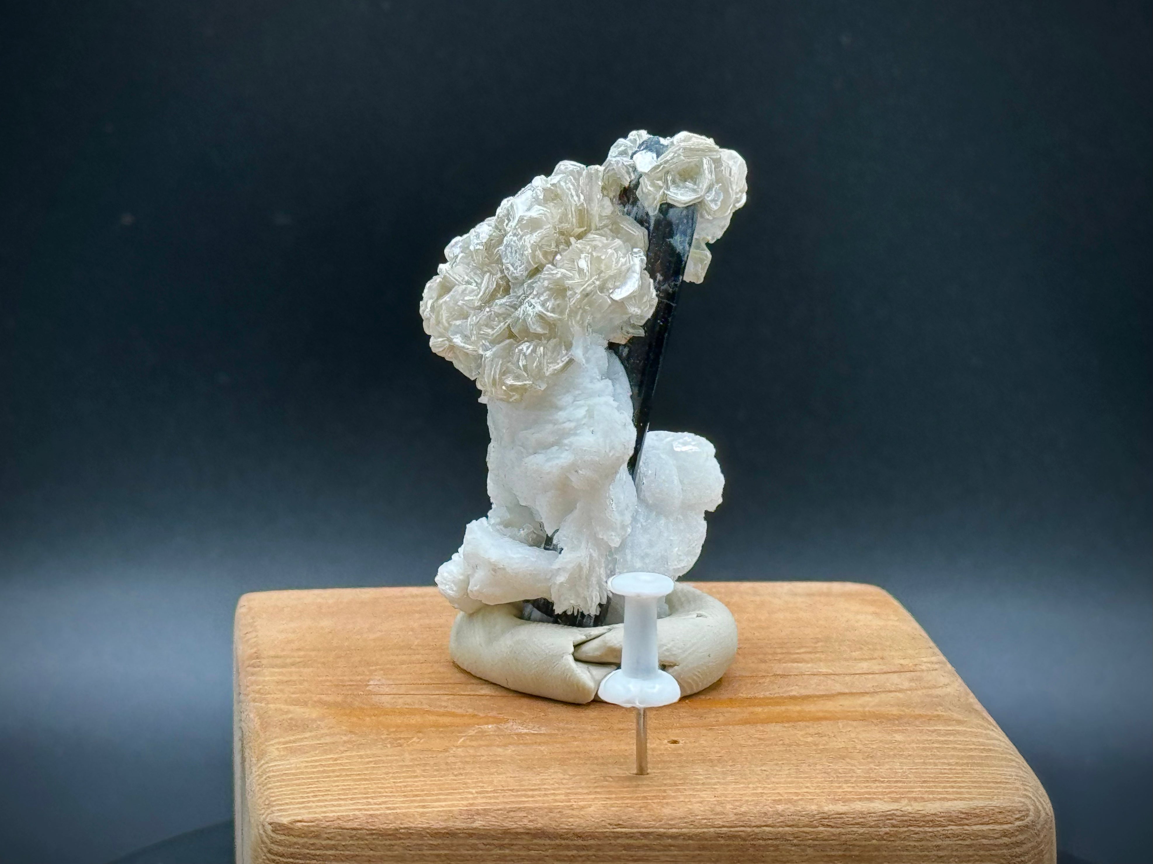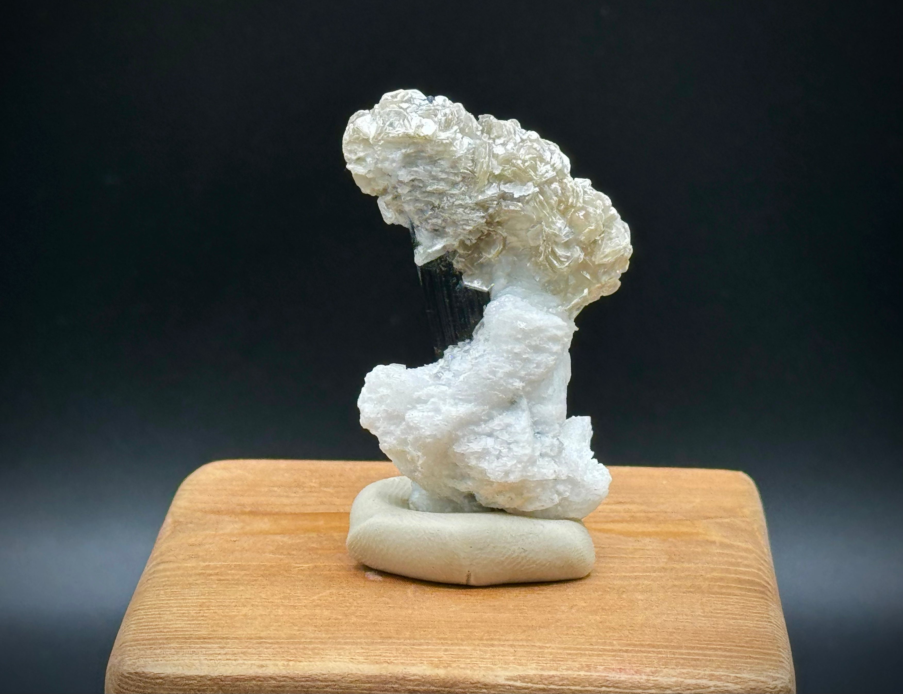 Améliorez votre collection avec notre tourmaline Schorl noire naturelle au mica et au feldspath du Pakistan. Ce spécimen de qualité collector A+++ présente une superbe tourmaline noire avec du mica et du feldspath chatoyants, parfaits pour l'exposition et la méditation.