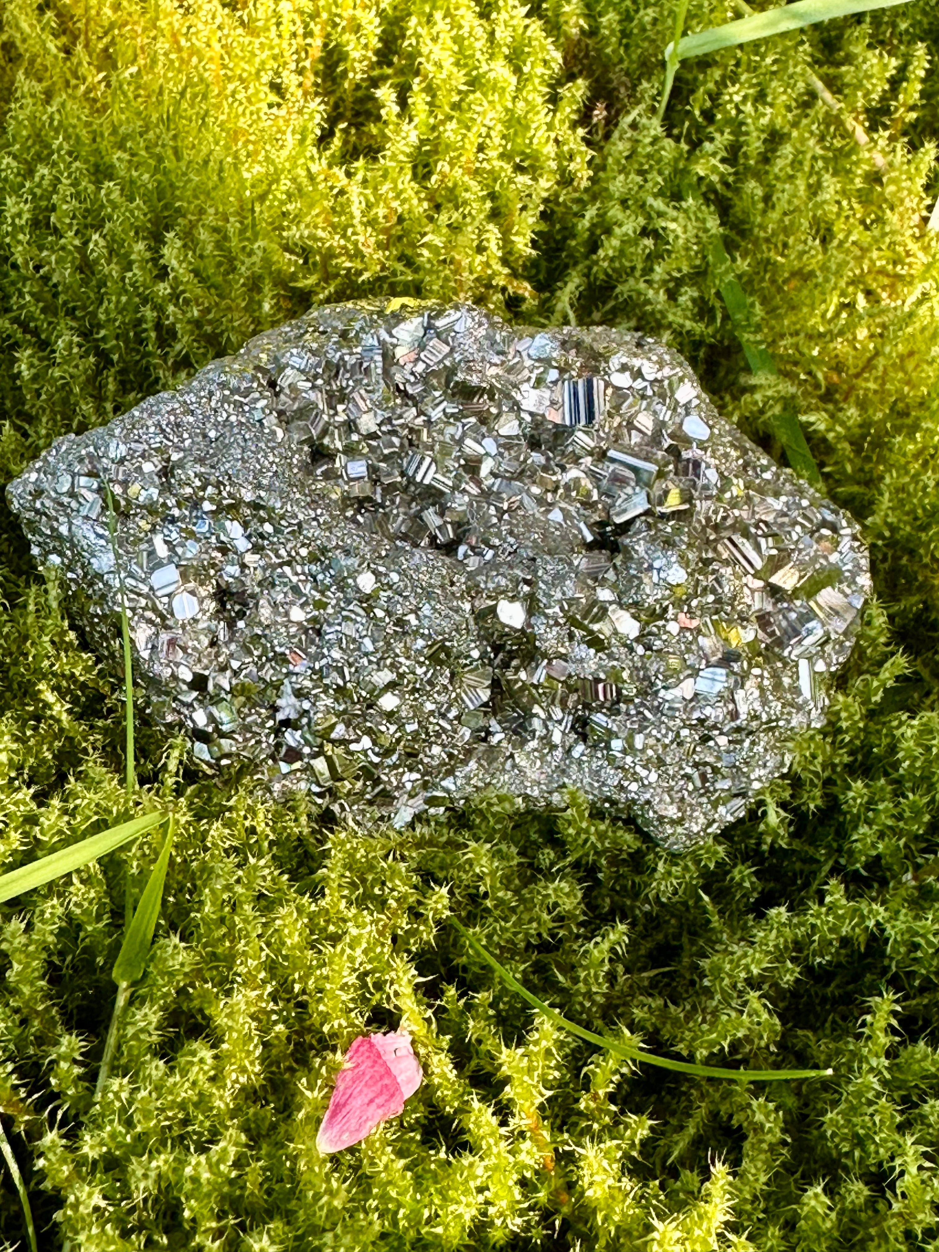 Superbe amas de pyrite de qualité A du Brésil – Cristal de pyrite cubique de haute qualité pour la guérison, la décoration intérieure et la méditation.