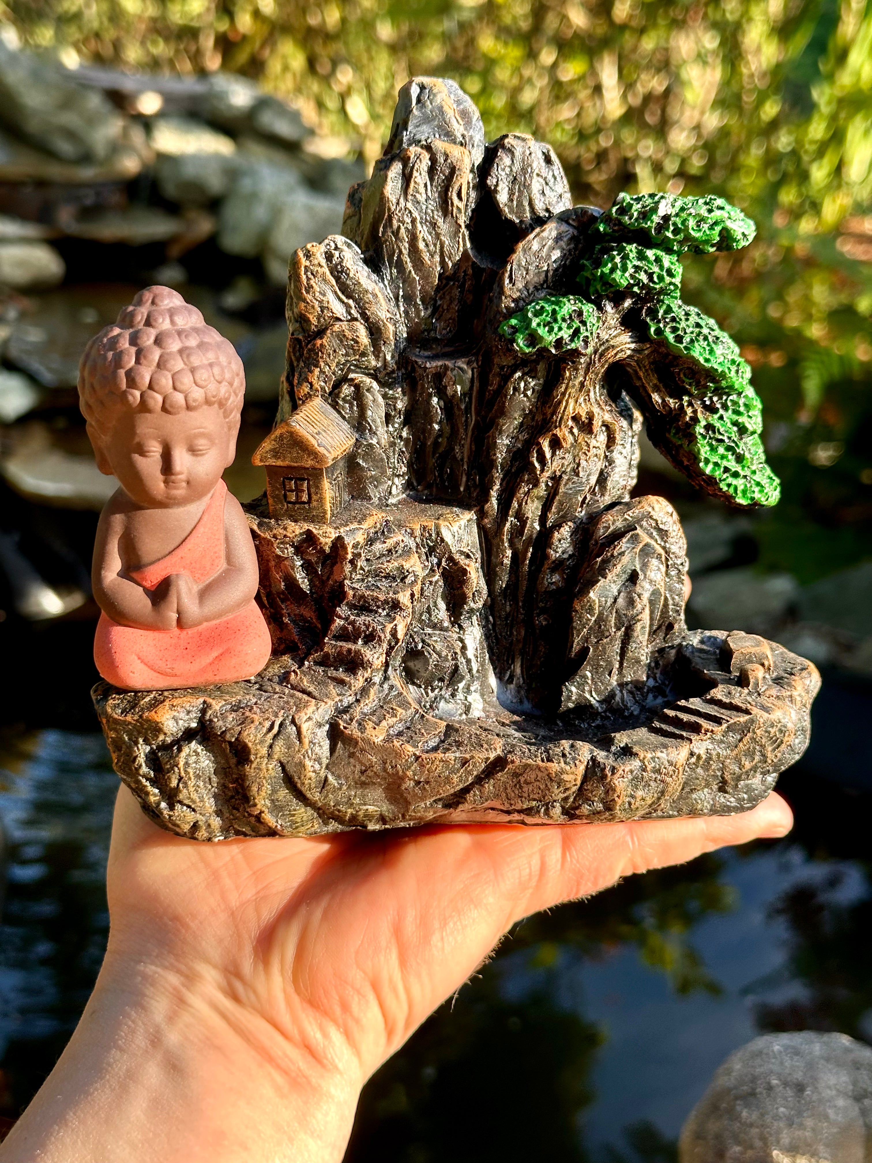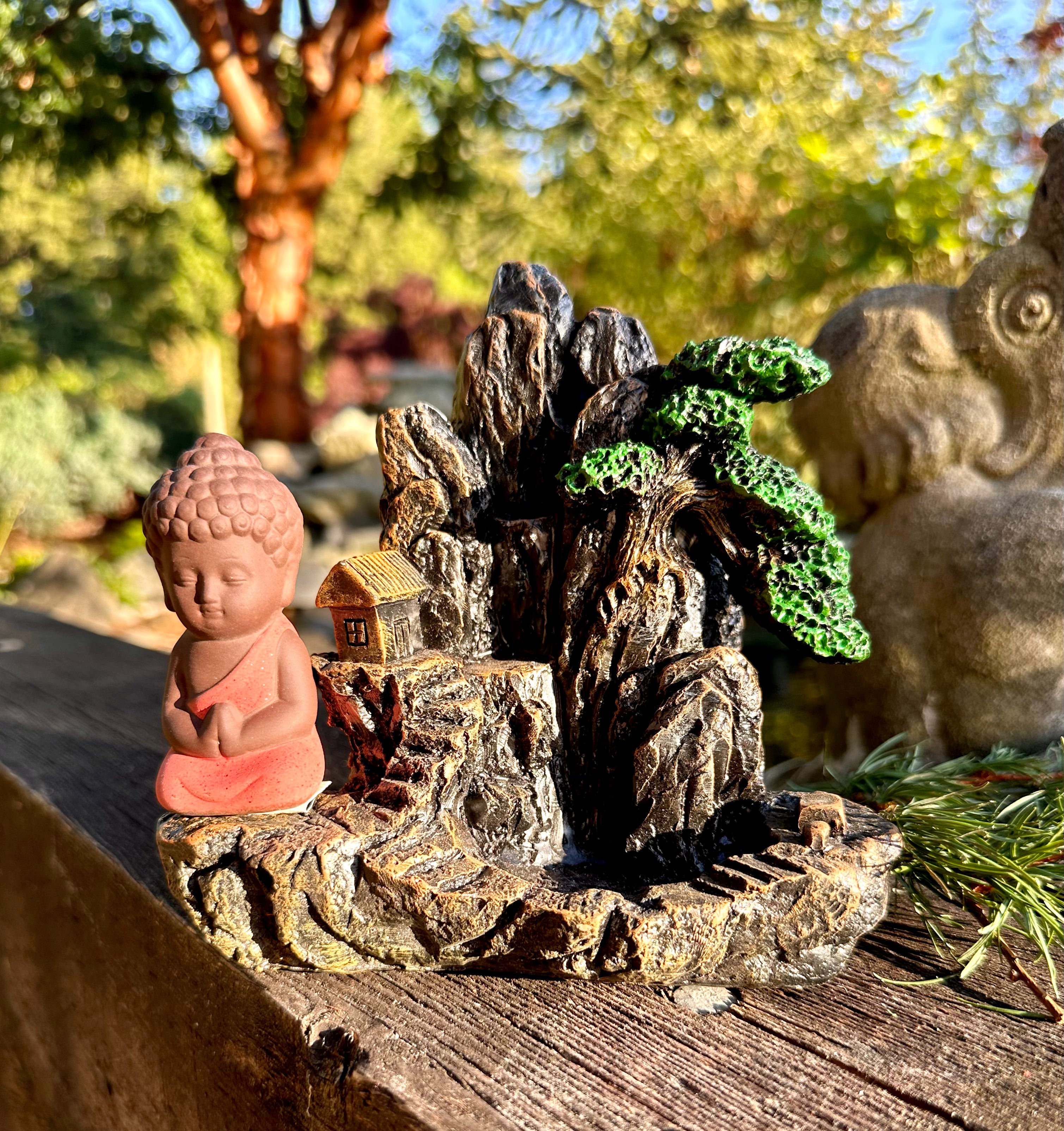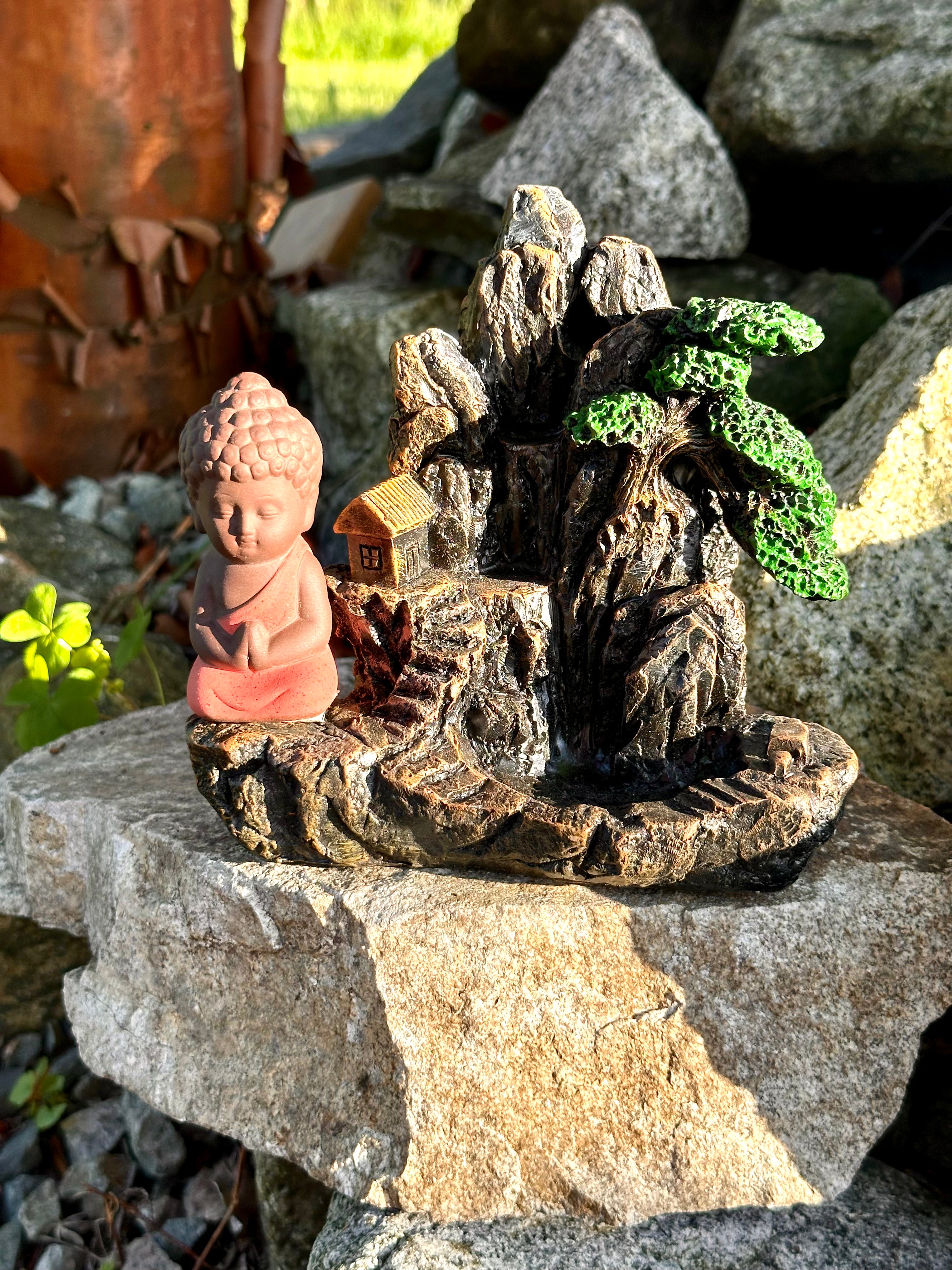 Buddha Waterfall Resin Backflow Burner for Cone Incense, Aromatherapy Ornament, Beautiful and cool